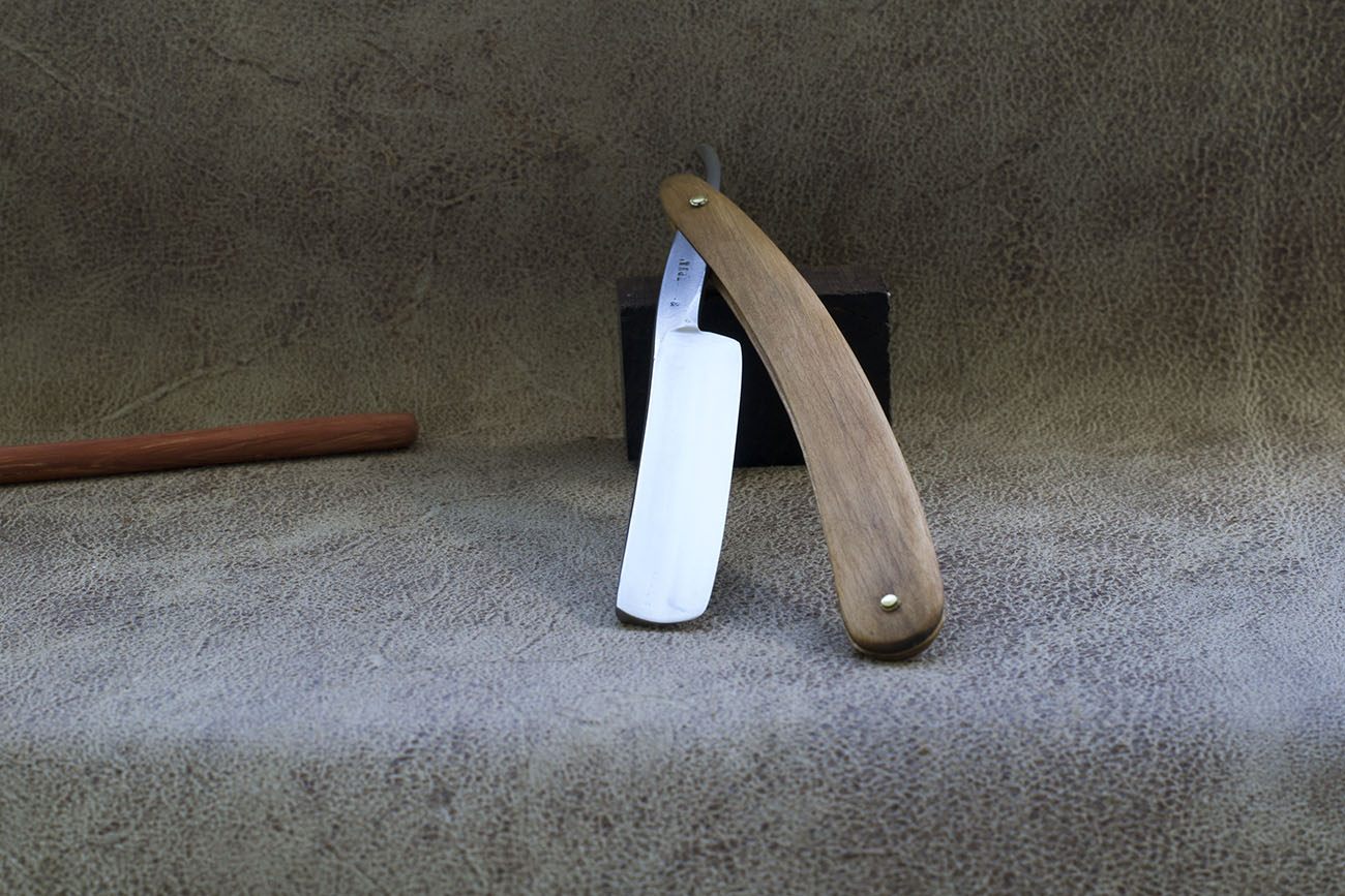 Опасная бритва марки Ability. Сделана из углеродистой стали, скорее всего из шведской. Отличная геометрия полотна, кромка равномерна и практически не видна, бритва имеет небольшие следы времени, никак не влияющие на потребительские качества. Произвела отличное впечатление при заточке, правке и тесте на рез волоса, сталь довольно твердая, значит будет дольше держать заточку. Бритва заточена и полностью готова к бритью. Хорошо подойдет для новичка. Бритва массивная, поэтому не рекомендую для окантовки бороды, зато отлично подойдет для бритья. Ширина полотна 21 мм., спинка 6.6 мм. вогнутость 3/4. Продано 2000 Show