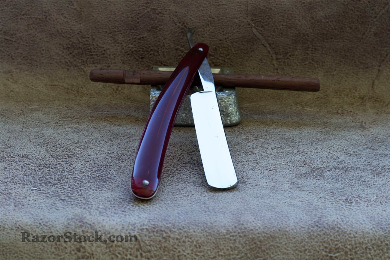 Немецкая опасная бритва из города Золинген (Solingen). Бритва произведена в 20-40 годах 20 века . Вогнутость 3/4, ширина полотна 15 мм. (5/8), спинка 4 мм. Имеет родную рукоять из целлулоида, никогда не была в использовании, поступила ко мне с заводской заточкой, была переточена и подготовлена к бритью. С бритвой решил ничего не делать, оставил на полотне некоторые следы времени, родные пины без шайб менять не стал, так как эрл бритвы чистый. Отполировал полотно и рукоять вручную и заточил. Готова к бритью. Рекомендую новичкам в качестве первой бритвы, так же годится для окантовки бороды. Продано. Spoiler Show