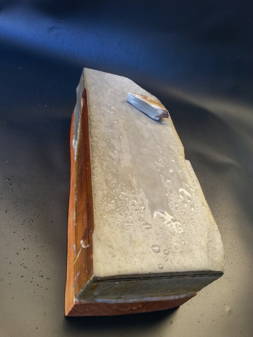 Re: Продаётся от SmileЯпонский Финишный камень.Nakayama Kiita Lv-(4.5-5).Прекрасный Финишный камень для опасных бритв и ножей.Никаких токсических линий и включений.Очень тонко работает.Прямой бритве трещина не мешает,но если раздражает,возможно отрезать по трещине ,и получим томо нагуру высокого качества,для наведения суспензии(размер камня позволяет!).Бонусом отдам алмазную пластину,для наведения суспензии.И кусочек сланца "Язык Дракона".