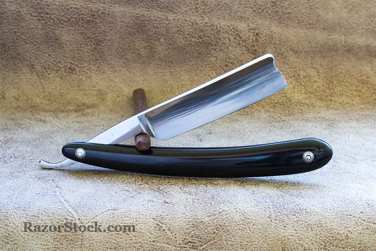 Немецкая опасная бритва из города Золинген (Solingen). Бритва произведена в 20-40 годах 20 века . Вогнутость 3/4, ширина полотна 15 мм. (5/8), спинка 4 мм. Имеет родную рукоять из целлулоида, никогда не была в использовании, поступила ко мне с заводской заточкой, была переточена и подготовлена к бритью. С бритвой решил ничего не делать, оставил на полотне некоторые следы времени, родные пины без шайб менять не стал, так как эрл бритвы чистый. Отполировал полотно и рукоять вручную и заточил. Готова к бритью. Рекомендую новичкам в качестве первой бритвы, так же годится для окантовки бороды. Продано. Spoiler Show