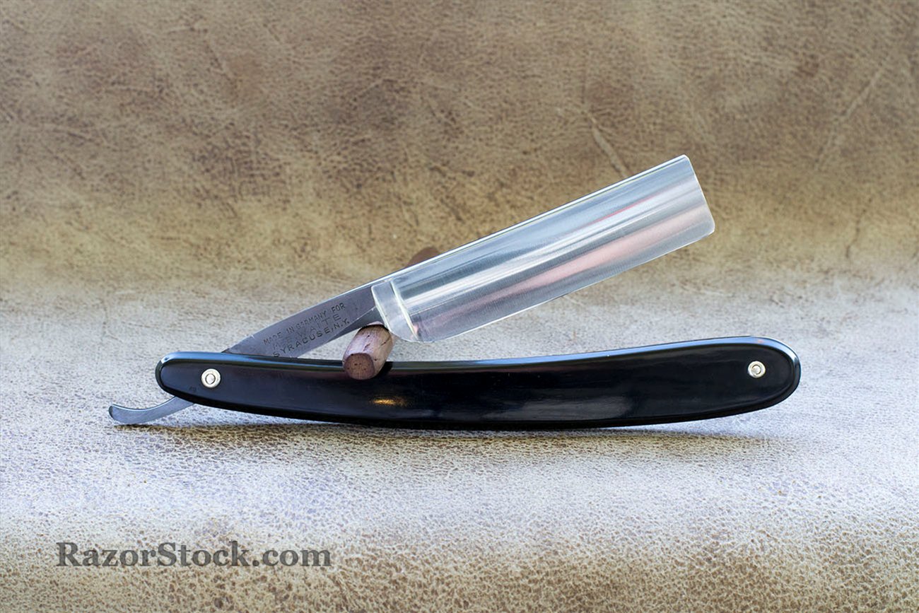 Опасная бритва, произведенная в Германии для дилера M.E. Wait в Сиракузах, США, штат Нью-Йорк. Бритва находится в отличном состоянии, не была в использовании, мной произведена легкая чистка и полировка полотна без разборки. Заточка показала отличную геометрию, кромка равномерна и не широка. Полотно 19.5 мм.(6/8), спинка 5.3 мм. Эрл, спинка и носик оксидированы на заводе, в комплекте родная коробка. Бритва заточена и готова к бритью. Отлично подойдет для новичка и в коллекцию. Продано. Merton Show