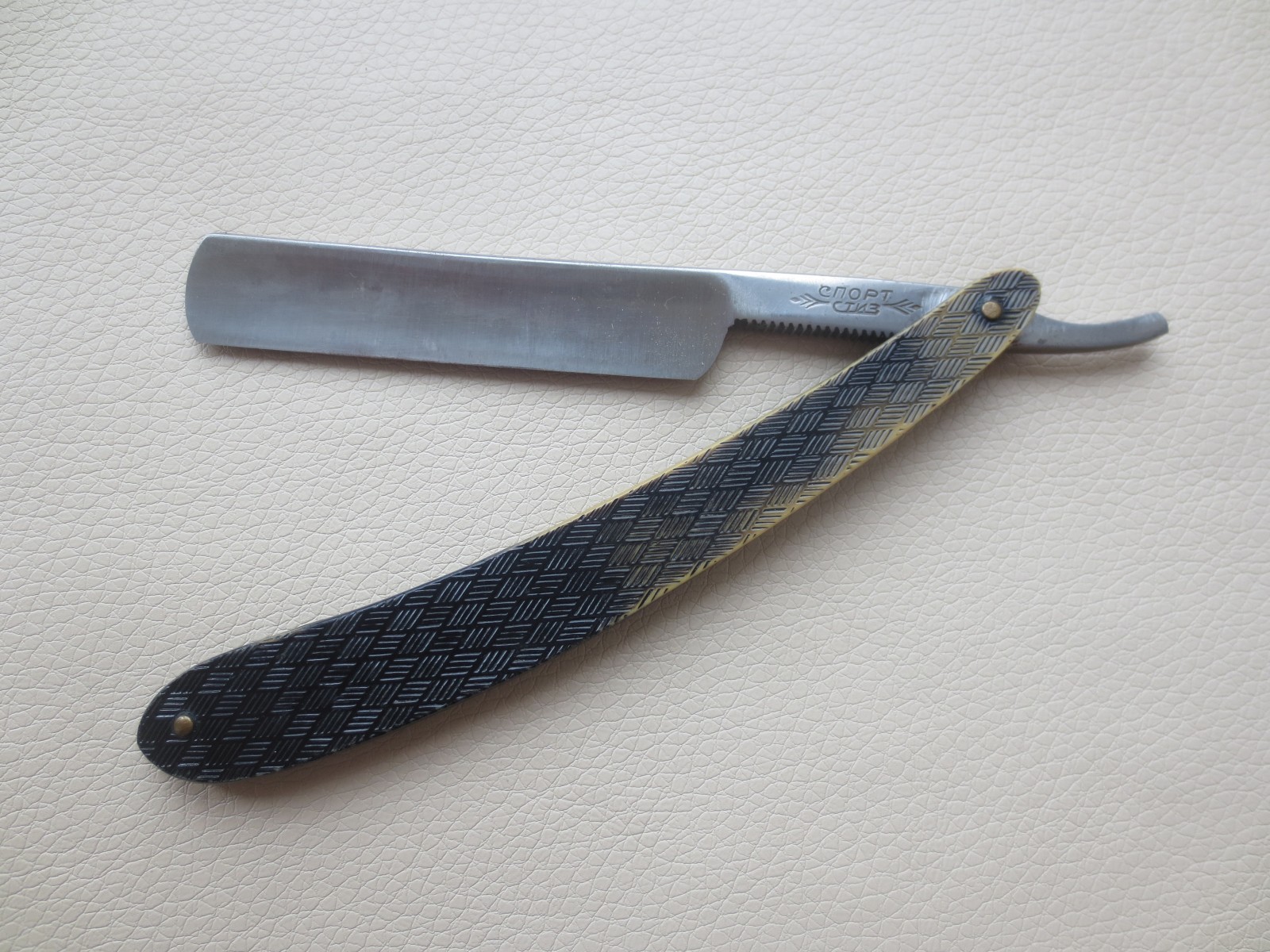 Обзавелся ранним Спортом 49г в состоянии практически новой бритвы (фото от прежнего владельца, я так лихо фотографировать бритвы не научился). Простые гармоничные формы, без изысков, но весьма добротное изготовление.