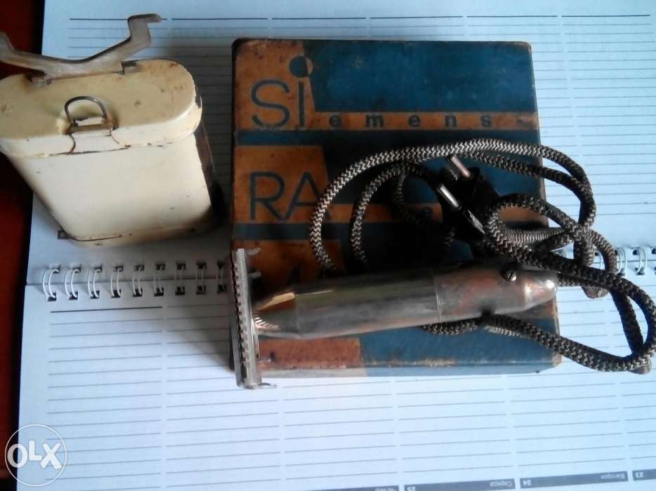 Называется Siemens Sirama, от немецкого Siemens Raiser Machine. Выпускались с 1932 по 1939 год. В 1933, кстати, в Лондоне был запатентован сам принцип работы - в отличии от всех остальных электробритв довоенного времени, у Sirama не просто вибромоторчик, от которого бритву трясет, а подвижное лезвие. На валу двигателя стоит треугольный шпиндель, а лезвие фиксируется в головке подпружиненой планкой. Моторчик крутится, треугольник вращается и двигает лезвие, пружинка возвращает его на исходную. Питается моторчик от прямоугольной батарейки 4,5в, такой, как в старых фонариках железнодорожников. Плюс в наборе давался кронштейн на который можно вешать бритву и коробочку для батарейки. Насколько я понял, было несколько вариантов бритвы, ранний, у которого корпус батарейки бакелитовый, и второй, поздний, с металлическим корпусом. Что интересно - коробки для батареек не взаимозаменяемые: на бакелитовых стоит хитрый жестяной штекер, а на металлических обычного вида штекер-вилка. Вообще, информации о этой бритве очень мало, но по фотографиям я заметил, что было еще куча отличий - разные цвета бакелитовых коробок (черный или коричневый), разная кабельная оплетка (черно-белая, как с утюга, или просто коричневая) и разные варианты оформления коробки. Бритву продавали по всей Европе, потому-то и коробки разные. В довесок к бритве делали еще и машинку-точилку для лезвий с таким же названием. Правда, в комплект с бритвой она не шла. От обычной черной немецкой точилки, с которой потом слизали и советские, сименсовская отличается корпусом (есть две заклепочки) и цветом металлических потрохов - они не белые, а желтые. Я подозреваю, что это желтый цинк, вряд ли прям латуни кусок. Сами корпуса были разноцветные, и желтые, и красные, и голубые, и с наклейками и с объемным логотипом. Ксати, попадаются сименсовские точилки с белыми потрохами, но это колхоз - на них виден логотип в виде трех колечек, которого на сименсовской начинке нет. Олег Бритва, похвастайтесь, что у вас за бритва? Re: SiemensСпешу сообщить суперновость!