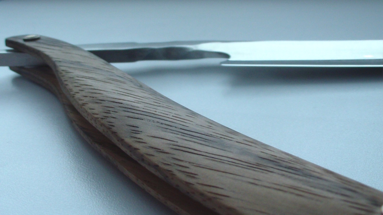 Кратко о бритве. При заказе бритвы была прислана фото бритвы Левиса со словами- "вот что то типа этого" После обсуждения появился такой вариант. Изгибы (изящество) + грубая железка( полированный сатин)При получении заказчик был доволен как форм фактором так и габаритами. Материалы У10, зебрано. закалка с самоотпуском.