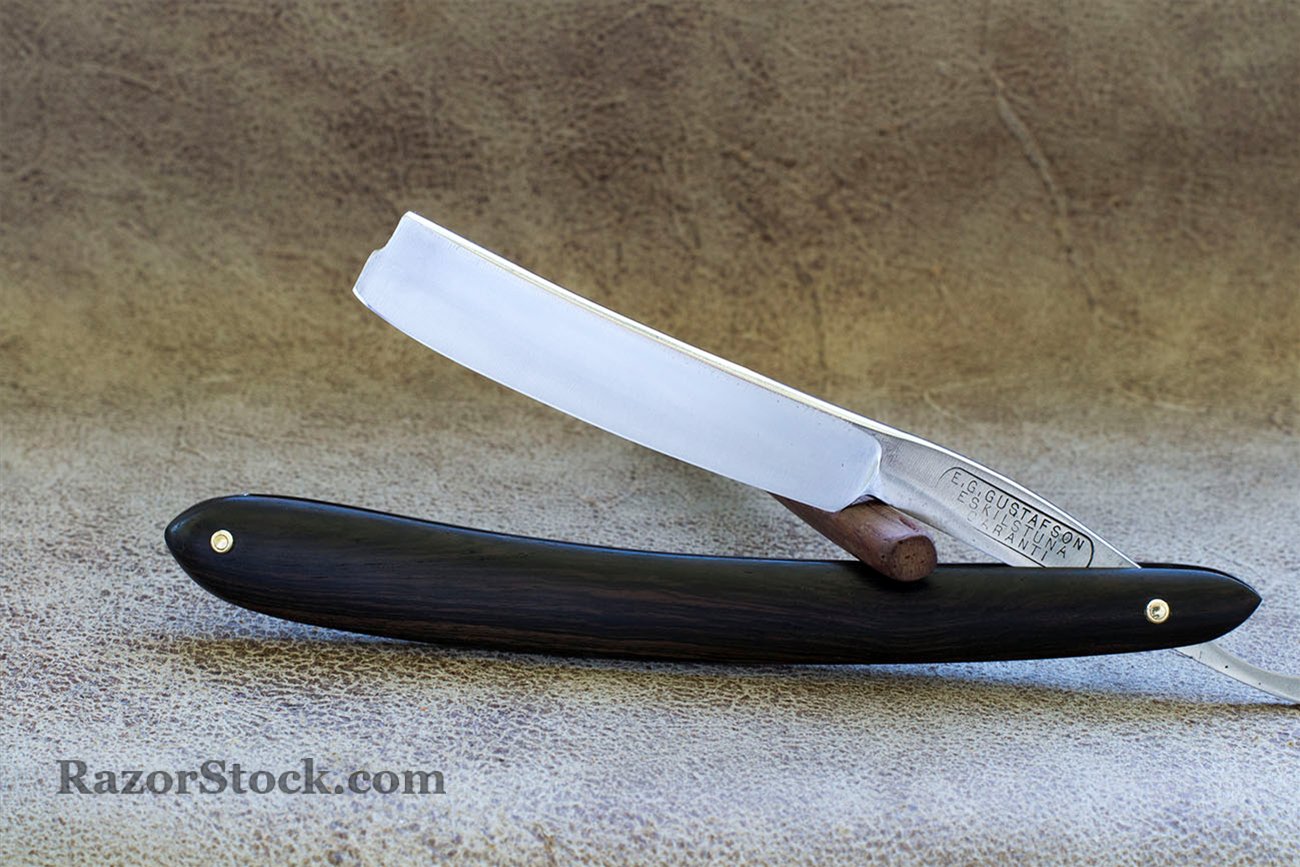 Бритва от одного из старых шведских производителей, период производства - середина 19 века. Информации о E.G. Gustafson почти нет, в частности я нашел сведения о том, что в фирме господина Густавсона трудилось всего 3 человека - он сам, его сын и ученик по фамилии Хеллберг, впоследствии открывший свою фирму, знаменитую изделиями под маркой J.A Hellberg. Масштабы производства говорят о большой редкости бритв г-на Густафсона и их большой культурной значимости. За все время своей работы я не встетил двух даже близко одинаковых бритв E. G. Gustafson, хотя все они имели много общего, почти все имели вонутость - клин и обладали эбеновой рукоятью. Несмотря на скромные масштабы качество бритв заслуживает уважения. Ширина полотна 5/8 (15.6мм) Спинка 4.8 мм. Новая рукоять из черного гренадила, так же использованы шайбы моего производства. Отличная геометрия полотна, качественная углеродистая сталь. Бритва заточена и готова к бритью. Продано Густафсон Show