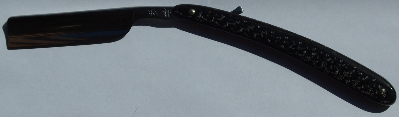 Яп. Состояние NOS. 6/8 Ручку расклепал так как повело от времени и установил карбон верхнего премиумного уровня. Карбон от фирмы поставщика для всех кастом мастеров ножей (для тех кто не в курсе бывают складные ножи ценой какой угодно воображению 1, 3, 5 или 10000 долларов. Например кастомки от Марфионе из карбона от этой же фирмы https://yandex.ru/images/search?text=%D ... -man1-3855 ) Карбон для глянца покрыт лаком. Фоткать это переливающийся глянец крайне проблемно (да и фотограф я гадостный Первые фотки сделаны на солнечном свете на улице а почему темные непонятно И отдельно фотки этой же бритвы с заготовкой ручки но не под лаком. Бритва заточена и готова к бритью. Цена 250 долларов или 15000 рублей