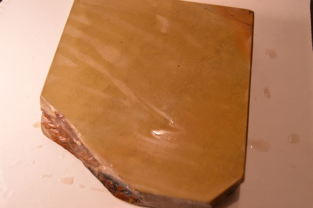 Spoiler Show Spoiler Show Японский камень, цвет киита, рекордсмен - чернеет моментально, по всей видимости из известной шахты. Чистый, без линий и включений, твердсть около 5, работает с нагурами, можно выжать суспензию при желании. Размер 132/83/31мм Цена Продан. Spoiler Show