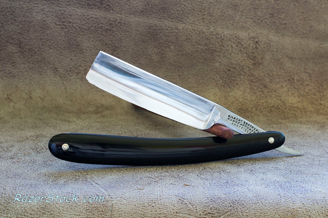 Опасная бритва от шеффилдских братьев Гилберт. Производство основано в конце 1830-х годов, но этот экземпляр скорее всего был выпущен в 60-70-х годах 19 века. Рукоять из эбонита, вогнутость 3/4, отличная геометрия. Бритва попала ко мне с незначительными следами заточки и практически без каких либо следов времени. Я лишь немного освежил полотно, отполировал рукоять и произвел заточку. Бритва довольно массивная - максимальная ширина полотна 21 мм, (13/16) .Спинка 5.8 мм. Отлично дополнит любую коллекцию, так как бритвы от братьев Гилберт довольно редкое явление, кроме того может с успехом использоваться новичком. Заточена и готова к бритью. Продано Spoiler Show