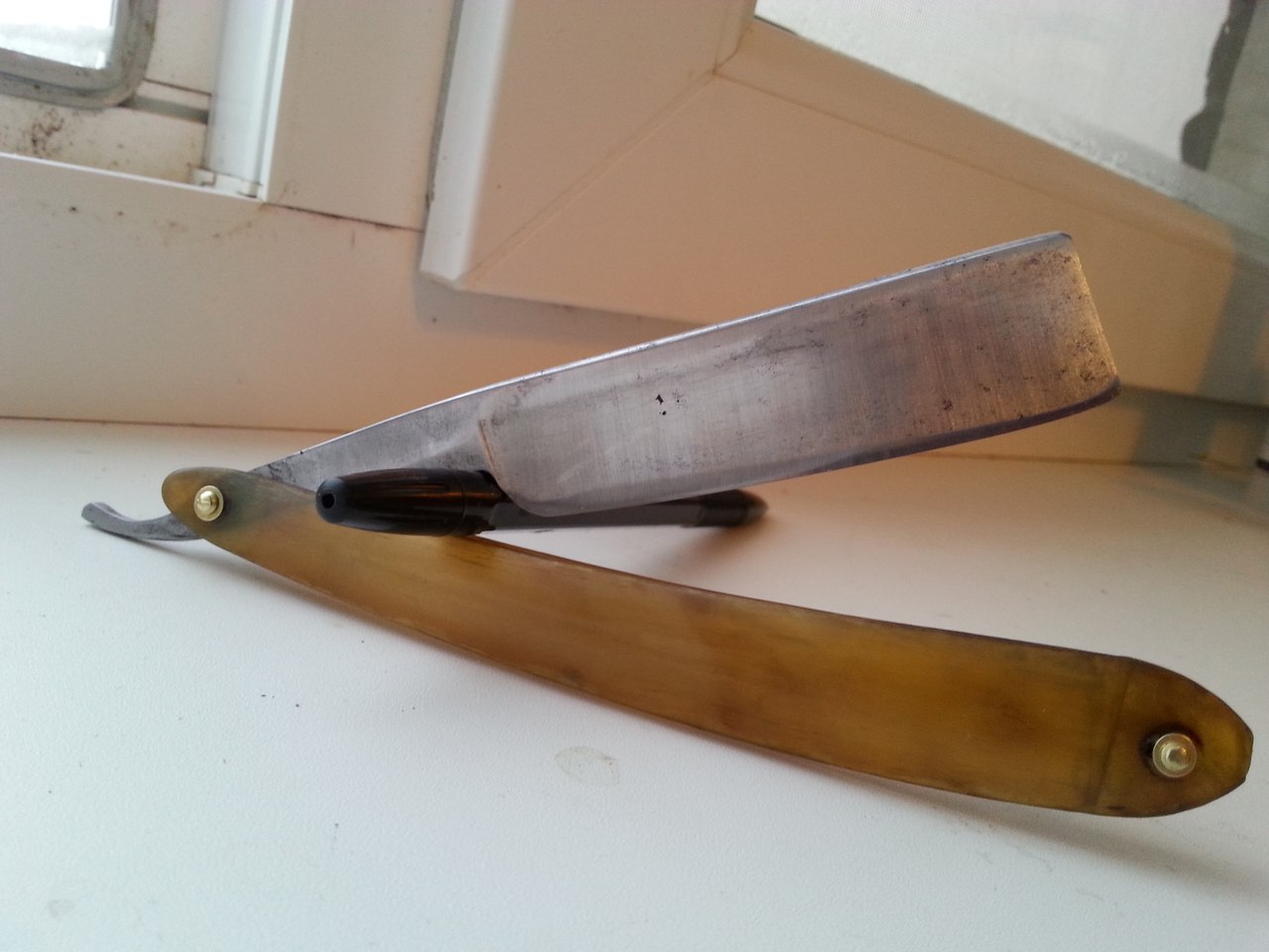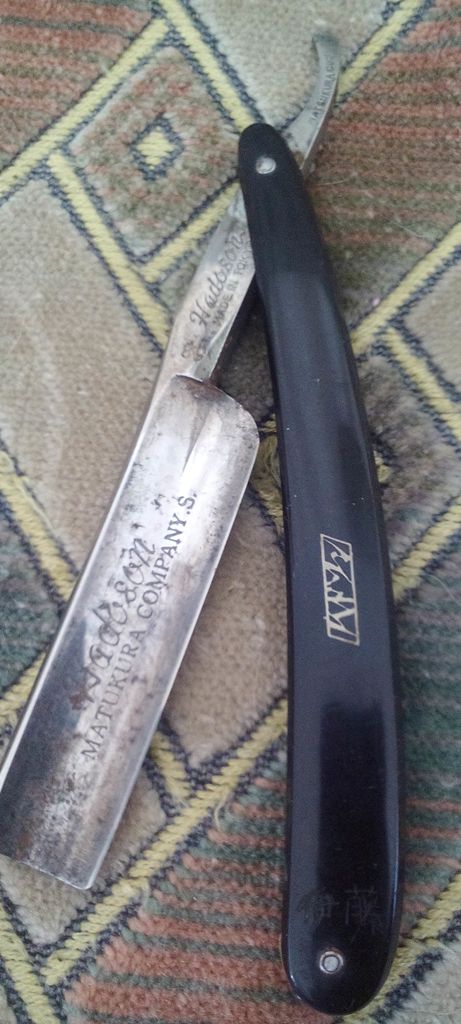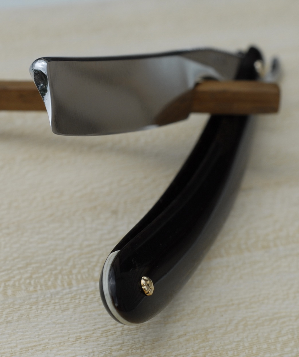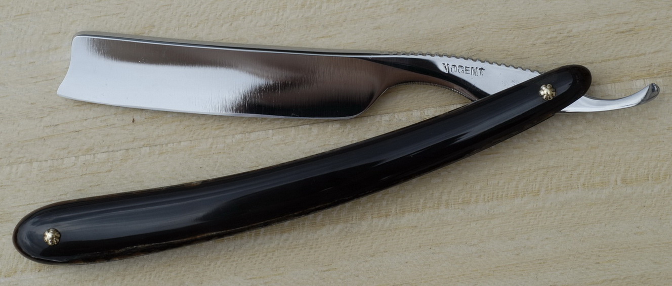 Re: Бритва до... и после...Старая французская бритва NOGENT. Долго лежала у меня. Фото "ДО", к сожалению, только от уважаемого, пропавшего РУМАТЫ. Ручку оставил старую, шпаклевал. Пины - самопал. Клинышек - слон.кость. В бритье просто шикарная, пожалуй одна из лучших, что у меня есть.