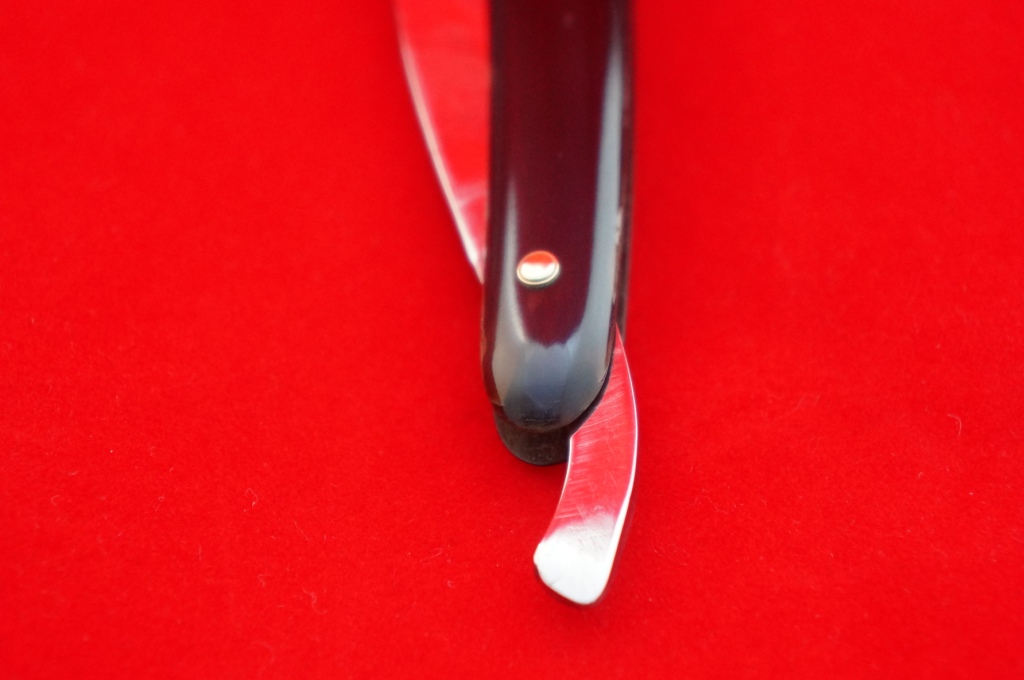Англия, выборка лезвия Near Vedge (почти клин), углеродка, ширина лезвия в самом широком месте - 19 мм., ширина обуха - 5,5 мм., длина лезвия - 76 мм., ручка - родная, рог, слегка поведена в нижней четверти ( заметно при пристальном внимании, на закрытие-открытие не влияет), пины, шайбы новые - латунь. Возраст - ориентировочно конец 19 - начало 20 в.в. Заточена, готова к работе. Бреет очень мягко, как и большинство клинов. Состояние в целом - почти идеальное, бреет отлично. Продано (на другом ресурсе) H. Sefton Show