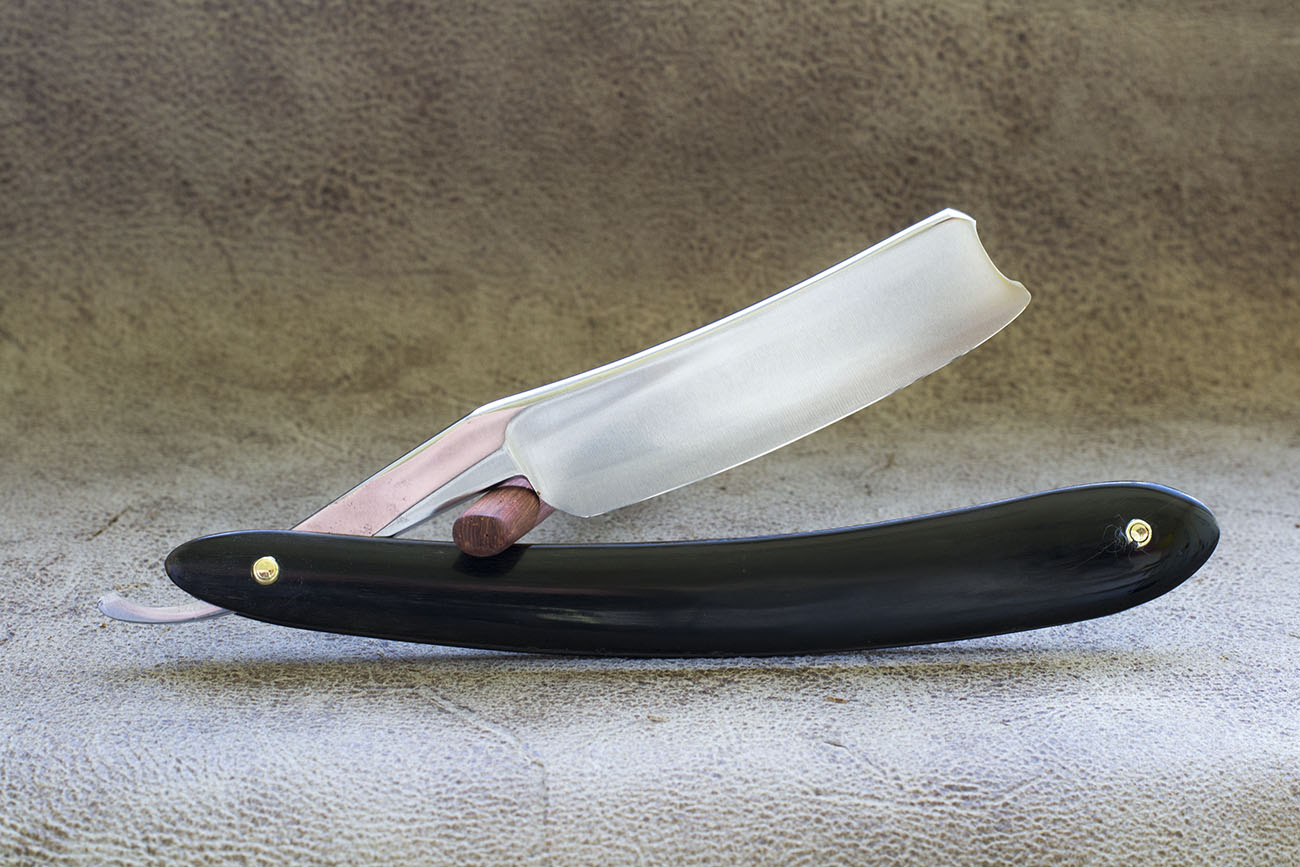 Японская бритва середины 20 века, изготовлена из японской традиционной стали - Тамахагане. Бритва не была в использовании, заточена мной впервые, имеет прекрасню геометрию и удобный эрл с выемкой. Ширина полотна 18.8 мм(6/8), спинка 5.4 мм. Бритва отлично подойдет новичку в качестве первой. Так же будет интересна для любой коллекции. Бритва из Тамахагане является довольно редким явлением и будет прекрасно дополнять любую коллекцию. Продано Spoiler Show