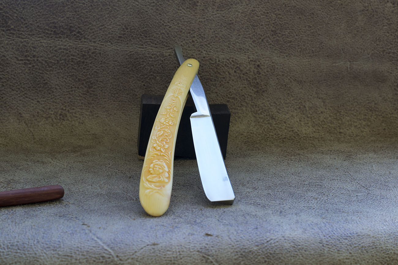 Бритва конца 19 - начала 20 века. Имеет костяную рукоять, ширина полотна в 5/8 (14,6 мм) и вогнутость в 3/4. Условно причислена мной к английским бритвам по схожести форм именно с шеффилдскими бритвами того периода. Информации по производителю нет. Бритва изготовлена из углеродистой стали, не сточена, хорошая геометрия. Прекрасно подойдет новичку для пробы. Обеспечит мягкое комфортное бритье. Легкая и маневренная. Заточена и готова к бритью. Продано G.L. & Co M Show