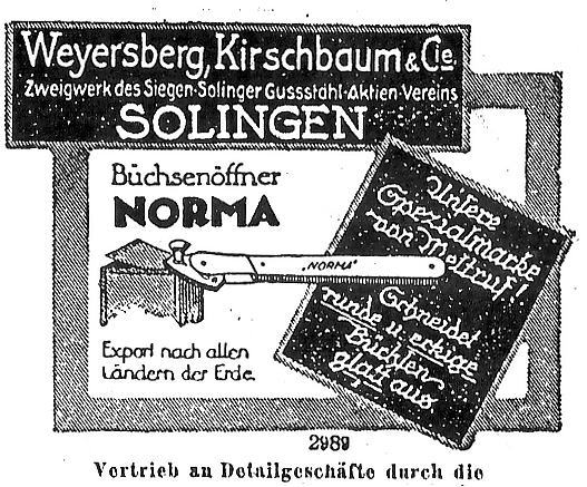 Ещё инфа (из интернета): В 1883 году была основана фирма WKC (Weyersberg, Kirschbaum & Co.), совместное предприятие фирм Gebr. Weyersberg и W. R. Kirschbaum. Рекламка как раз этой компании у меня выложена выше. Это совместное предприятие было гигантом мирового уровня. WKC изготавливала холодное оружие, мачете, продукцию для стрижки волос, пишущие машинки, а с 90-х годов 19-го столетия велосипеды (под маркой "PATRIA"). Ежегодно фабрика производила продукции более 100 000 штук. ![]()