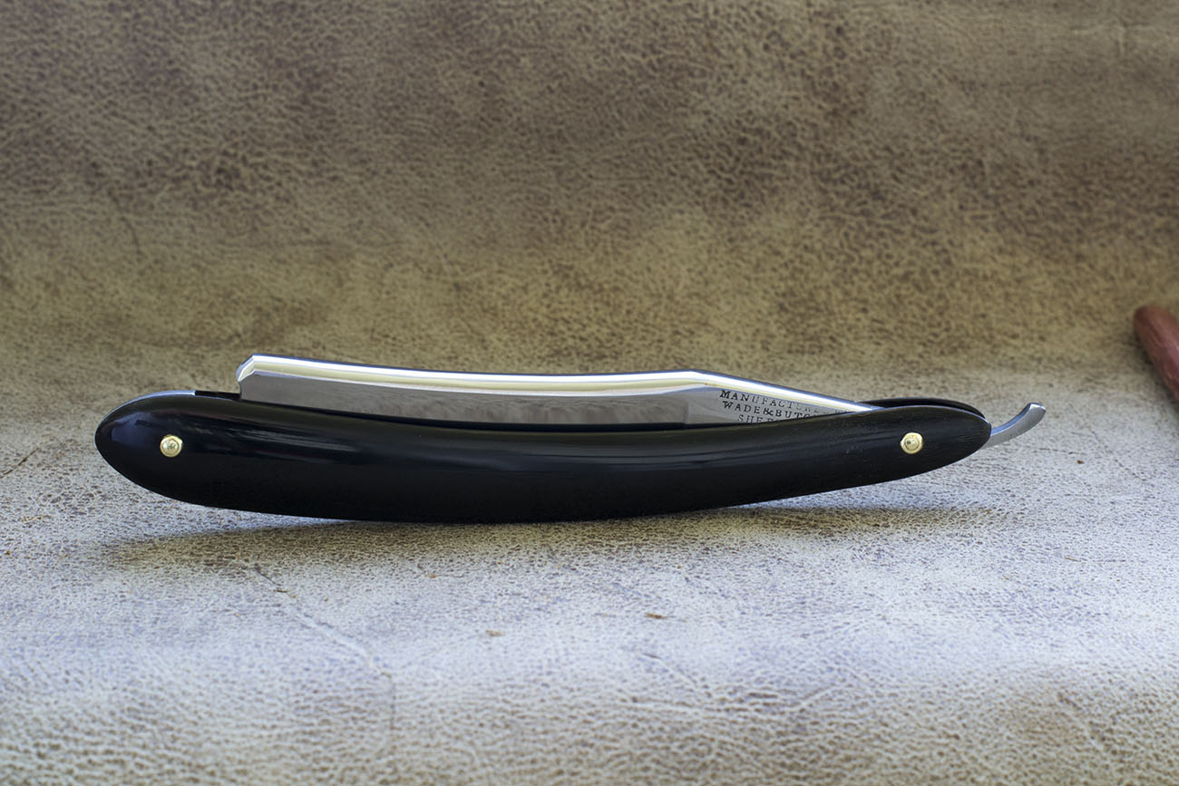Еще одна бритва от от культового английского бренда Wade&Butcher. Время производства - 60-80 годы 19 века. Родная роговая рукоять с родными латунными шайбами . Отличная геометрия полотна - фаска равномерно тонкая по всей длине, никакой коррозии, легкая патина устранена после чистки. Ширина 17 мм (5/8), вогнутость 1/2. Бритва очень удобная и маневренная. Отлично подойдет новичкам для бритья или окантовки. Замечательное качество старых английских бритв не оставит Вас равнодушным. Продано Wade Show