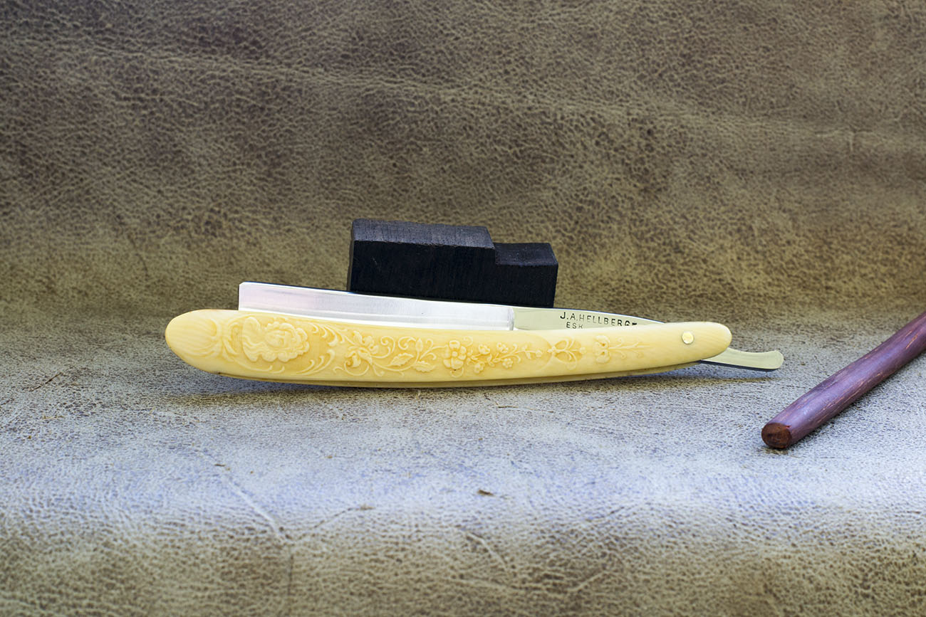 Среднеразмерный шведский клин от известного производителя J.A. Hellberg. Бритва без каких либо следов использования, точилась мной впервые, проведена полировка с разборкой. Рукоять из целлулоида Период производства - конец 19 - начало 20 века. Ширина 5/8, идеальная геометрия. Ввиду того что скопил некоторое количество старых шведских клинов - цена продажи изначально невысокая. Тем не менее считаю подобные бритвы очень качественными и очень удобными. Продано Хеллберг Show
