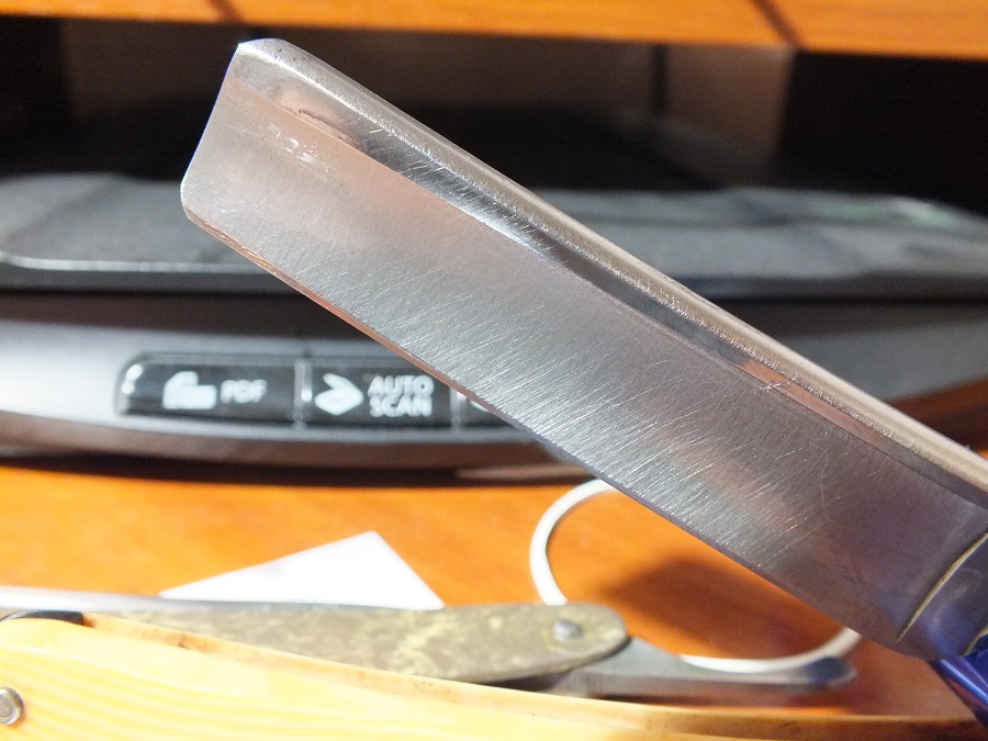 Бритье. У этой бритвы нет никаких выдающихся свойств. Бреет она как свежая кассета жиллета, чисто , молча. Неприятных ощущений нет. Такой нормальный инструмент для бритья. Для начинающих лучше варианта нет еще и потому, что ей пользовались аккуратные японцы. Носок у бритвы уточен и вся она регулярно перетачивалась не раз заточником, поэтому сохранила хорошую геометрию, а не яму от ремня в передней трети. Бритва не такая твердая как СТИЗ, наверное чуть мягче вачи, легко затачивается, наверное и легко сядет. Не слушаю, что говорят, смотрю , что делают.