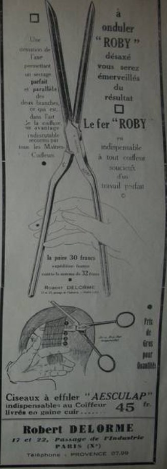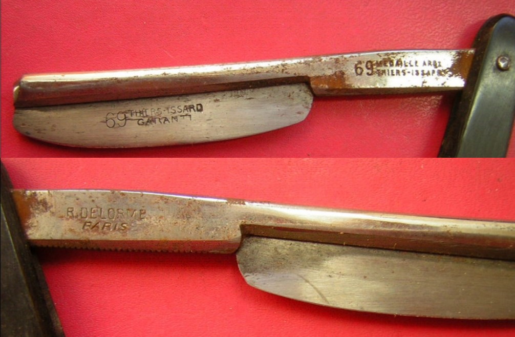http://www.delorme.fr" onclick="window.open(this.href);return false; - "Всё для профессионалов, парикмахерских и салонов красоты" На сайте о свой истории почти ничего не пишут, только общие фразы: "Мы уже более 100 лет на парикмахерской службе. В то время мы продавали опасные бритвы, маникюрные ножницы, шампуни, мыло, масло для волос и бороды. Клиенты были в основном работники парикмахерских." Сейчас это большая фирма, 500 000 евро уставной капитал, два филиала, занимаются тем же и находятся по тому же адресу. Вот их реклама того времени, 1933 год: Бритвы, конечно же, делали не сами, а размещали заказы в Тьере. Picador, 1927 год. В регистрационном листе написано: Регистрация торговой марки: Я, нижеподписавшийся, Beaujeu-Dumontel, промышленник и гражданин Тьера, действую от имени Robert Delorme, из Парижа, улица passage de l'Industrie, 22. Beaujeu-Dumontel это владелец большого завода по производству бритв: Всего, по такому поручению, на имя Beaujeu Dumontel было зарегистрировано 14 торговых марок: в 1924 году: THE STARTER, CRISTAL, L'INDUSTRIE ROYALE, Le Petit Parisien, EXTRA DRY, SUPER SALOON, PRIM'RAZ, VICTORY, Tout va bien в 1927 году: PICADOR 80 RO DELORME PARIS - основная марка, которая ставилась на эрле в 1928 году: DIXI, TITUS, CHARLESTON Spoiler Show Но не только Beaujeu Dumontel выпускал для них бритвы. Вот бритва выпущенная фирмой Thiers Issard: Возможно выпускал и кто-то еще. На ранних бритвах ставилось клеймо "R. Delorme Paris" Ну, а сам Robert Delorme (поставщик для парикмахерских), основатель фирмы, умер 6 декабря 1943 года. Вот найденный некролог: Re: Robert Delorme, Parisнесколько фоток бритв в коллекцию: