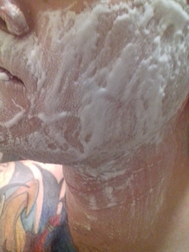 Решил вспомнить про это мыльце и сегодня достал с ним кружку. Соблюдал анти-рекомендации, то есть не замачивал мыло вообще, а просто намочил шайбу под краном, не использовал жесткий помазок (взял жидкую синтетику омега первого поколения). Воду из помазка стряхнул. Делал забор мыла держа шайбу в руке и потом перешел в чашу. Пены получалось очень мало по сравнению с теми мылами, которые генерируют пены как скатерть-самобранка. Однако я наносил на лицо пену три раза и ее вполне хватало. И так, пена на лице... 1) спустя одну минуту 2) спустя 7 минут 3) освежил пену помазком, который макнул кончиком слегка в водичку 4) спустя 2 минуты после того как освежил пену..другая сторона лица Но! пока что не пробовал бриться с этим мылом и не могу ничего сказать по поводу скольжения. Но заочно говорю, что на мою кожу мыло очень приятно действует - не сушит, не стягивает, нигде не вызывает никакого жжения и дискомфорта при длительном нанесении.