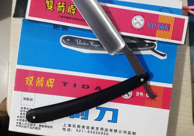 Выбрал "Двойную Стрелу" 66 в качестве первой бритвы. Сталь - углеродка. Первое впечатление положительное - бритва создает ощущение добротного и качественного инструмента. За счет большой ширины лезвия и закругленного носика первое бритье прошло практически без порезов.
