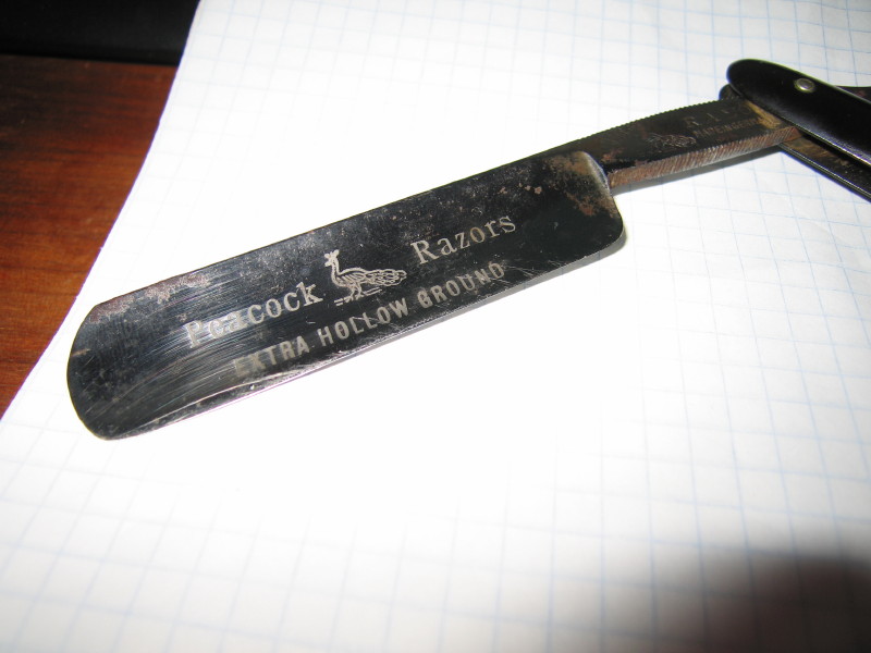 Что это за зверь? (Peacock Razors) (!)Продавец уверял что бритва времен первой мировой войны. Фирма золинген была еще не так известна и это ее прародитель. На лезвии написано Peacock Razors и нарисован "павлин", чуть ниже - extra hollow ground. Еще made in germany. Сзади - магическое число 220. Раскажите что это за девайс?