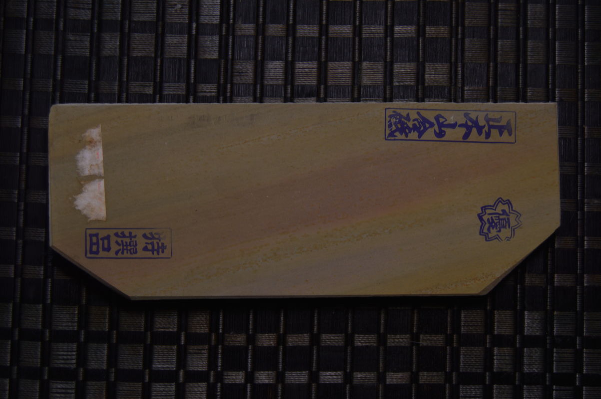 Re: Продаётся от artemarut1 Распродажа страницы №1Spoiler Show Японский камень, цвет солнечный (Иромоно), твердость около 4+ очень тонкий финишный камень, использовать лучше всего последним в сете, суспензию добровольно не дает, но очень легко выжать с помощью нагуры. Такой тип камней можно использовать без сета нагур, достаточно одной более твердой чем сам камень. Нет каких либо царапающих включений, линия на камне исключительно цветовая, обработан против расслаивания (бока и низ, некоторое время камень был в моем рабочем сете). Размер в максимуме 167/83/27мм Цена Продан Spoiler Show