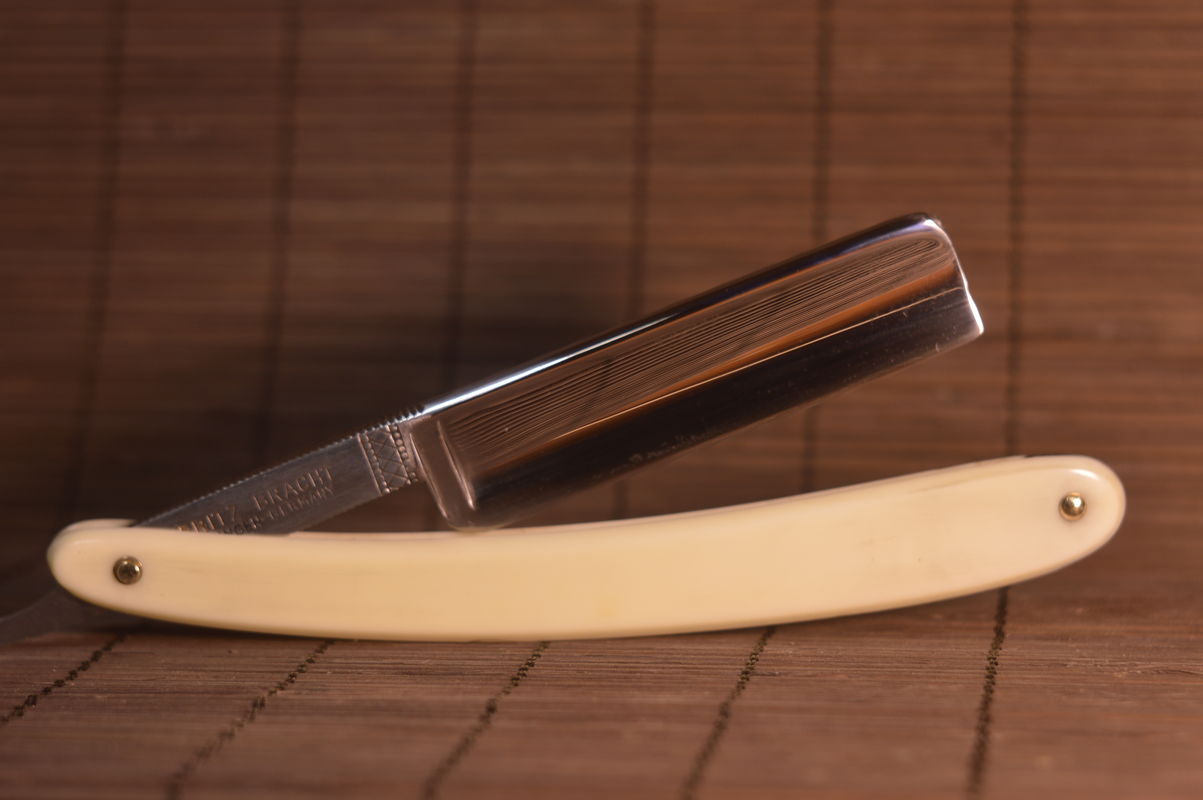 Re: Продаётся от artemarut1 Скидка 10% на все весь июль!!!Spoiler Show Wade&Butcher Fine India Steel, размер чуть больше чем 19/5.5мм(полотно/спинка), реставрация с сохранением патины, ручка также после реставрации(рог, трещин нет, родная) с точки зрения практического применения нет никаких проблем, режущая кромка чистая . Обычно рукастые продавцы подвергают такие бритвы регринду и точат получившийся hollow с помощью изоленты, здесь как видно все как делалось раньше в золотое время опасных бритв. Цена Снята с продажи(заточка входит в цену) Spoiler Show Spoiler Show Для сравнения фото бритвы той же марки с торговой площадки авито, как видно на фото обух абсолютно чистый от следов камня, это значит что бритву затачивали с несколькими слоями изоленты и это не самое худшее с точки зрения бритв холлоу, но для бритв типа клин сложно добиться четкого сведения даже с одним слоем.