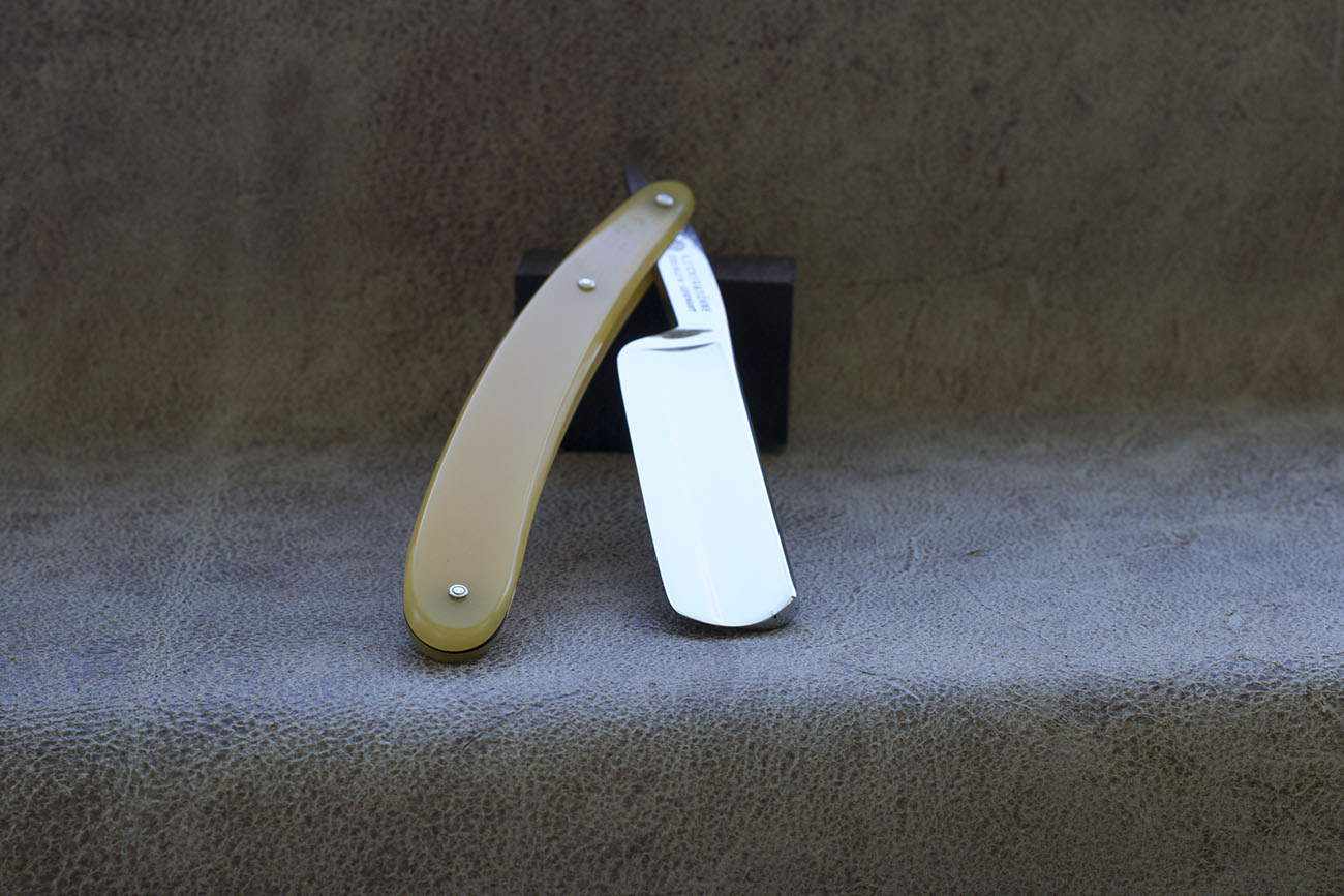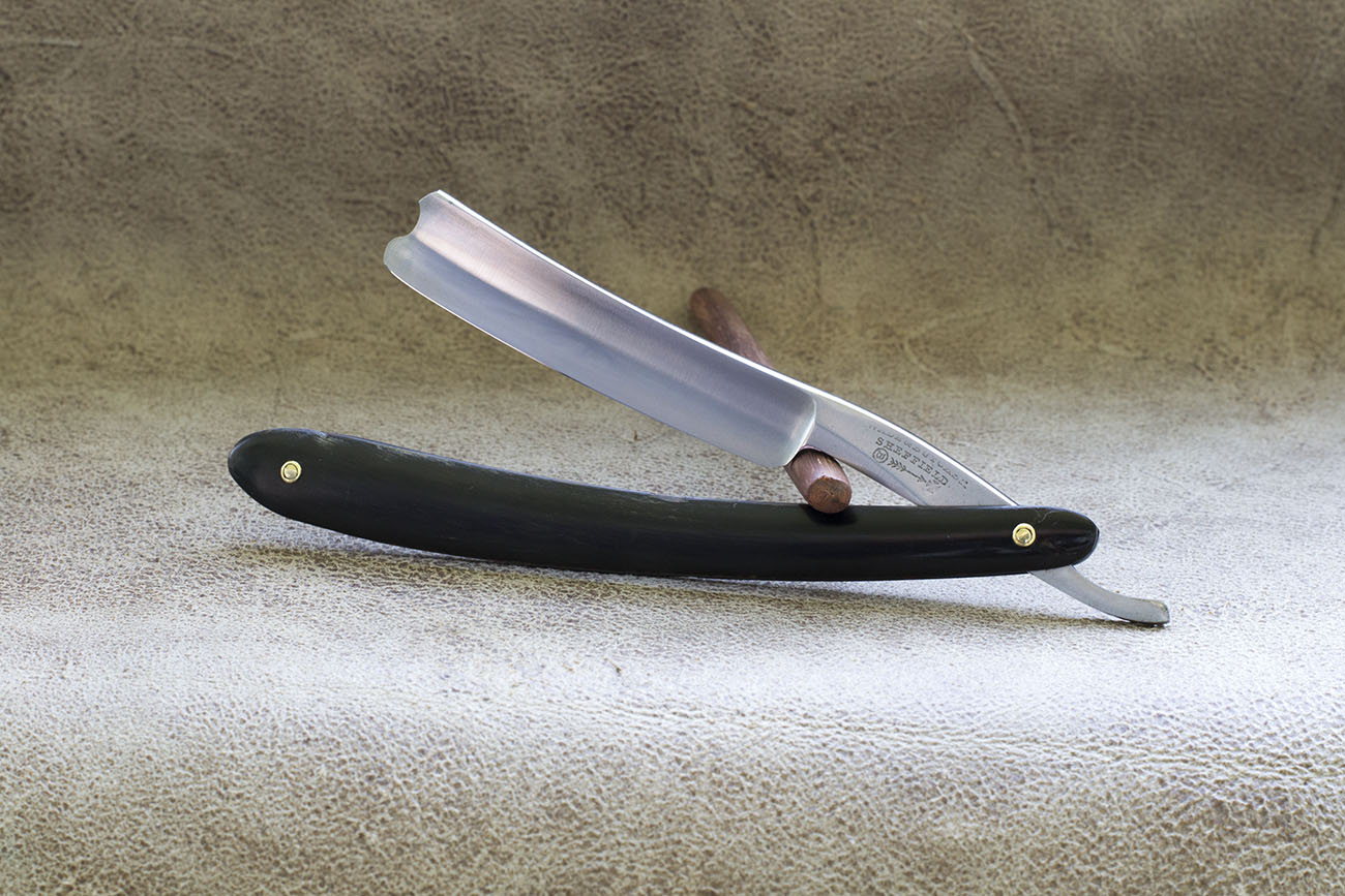 Еще одна бритва от от культового английского бренда Wade&Butcher. Время производства - 60-80 годы 19 века. Родная роговая рукоять с родными латунными шайбами . Отличная геометрия полотна - фаска равномерно тонкая по всей длине, никакой коррозии, легкая патина устранена после чистки. Ширина 17 мм (5/8), вогнутость 1/2. Бритва очень удобная и маневренная. Отлично подойдет новичкам для бритья или окантовки. Замечательное качество старых английских бритв не оставит Вас равнодушным. Продано Wade Show