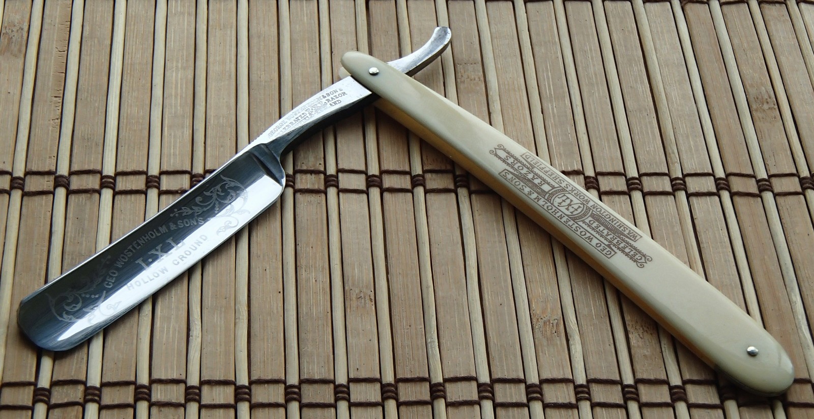 Компания Geo.Wostenholm & Son приобрела товарный знак "Трубка" от Уильяма Хатчинсона (который был зарегистрирован 22 декабря 1694 года) в 1843 году , и описывается Wostenholm-ом как старейшая зарегистрированная марка бритвенных компаний. Они, типа, гордятся не тем, что начали изготавливать в 1694 году, а тем, что их торговая марка существует с 1694.