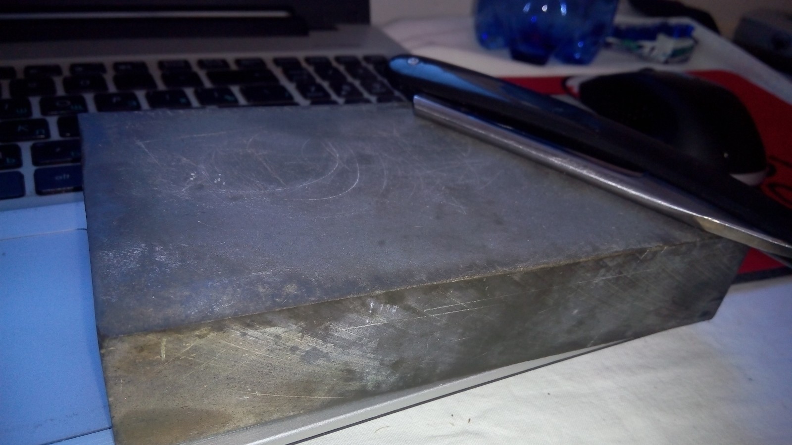 Re: Помогите определить каменьДоброго всем дня! С праздником! Подскажите, что за камень? Отдал друг, зайдя в магазин где он его брал мне сказали, что название ему TITAN (Китай, как и бритвы) и что он 3000 гр. Размеры 16*5*0.8 На сайтах где продают этот камушек кроме как это TITAN ни чего... Интересует не коммерческое его название.
