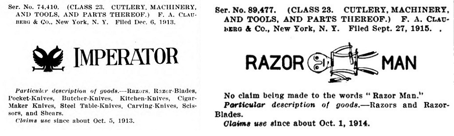 Пролистав Official gazette of the United States Patent Office, решил выписать от туда все фирмы, которые имеют отношение к бритвам (многие к безопасным бритвам) и скопировать их торговые марки.