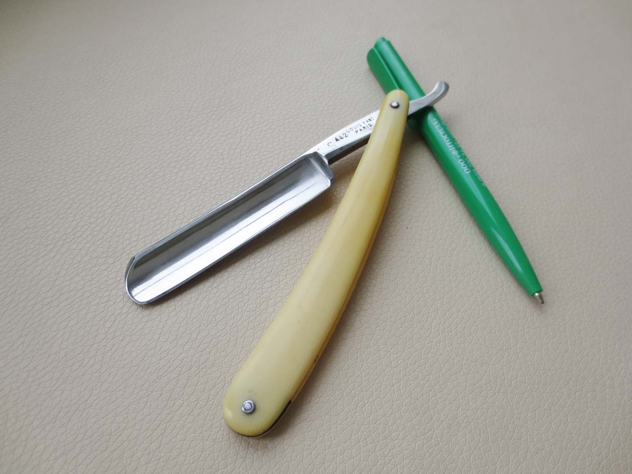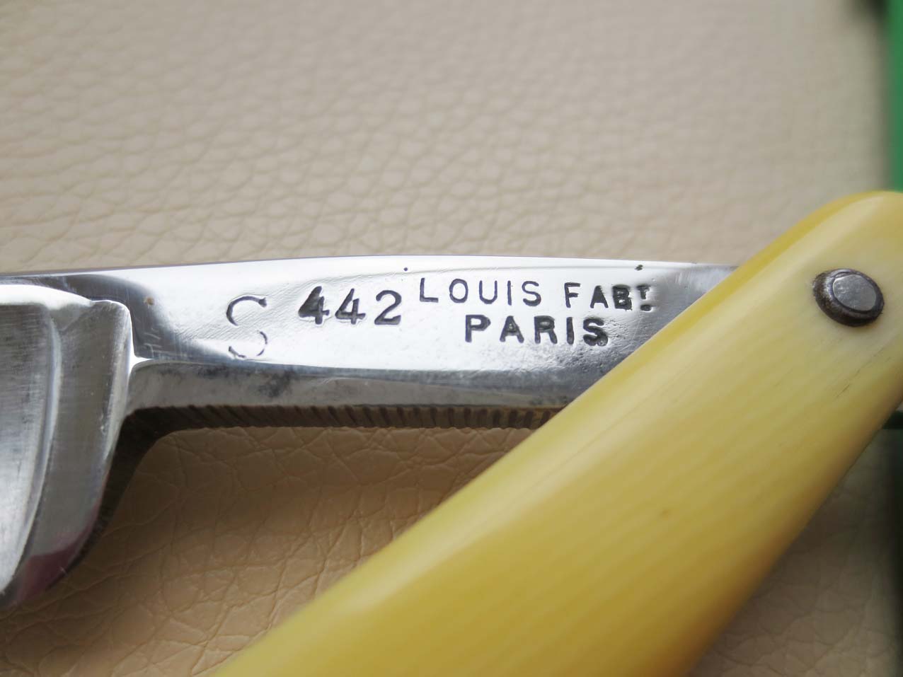 Re: Louis Fabt Parisбритва тоже нашлась одна. Жаль фото сильно замыленное, хотя и объявление на ебее. Настолько плохая, что копировать не буду, просто размещу ссылку, что бы посмотреть и ничего не увидеть)) Разве что эрль в костяных пластинах: