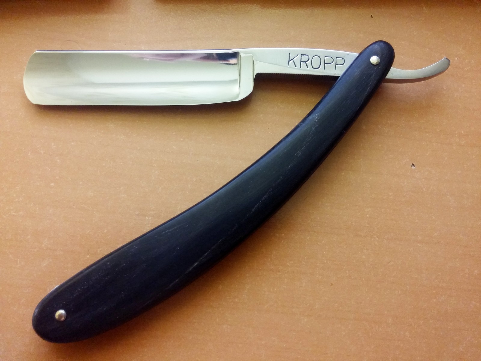 1. Kropp Sheffield 6/8 (19мм), Англия, полная вогнутость. Бритва в отличном состоянии. Заточена. Геометрия супер. Ручка - рог. Углеродка. Дает приятное, комфортное бритье. Продана!