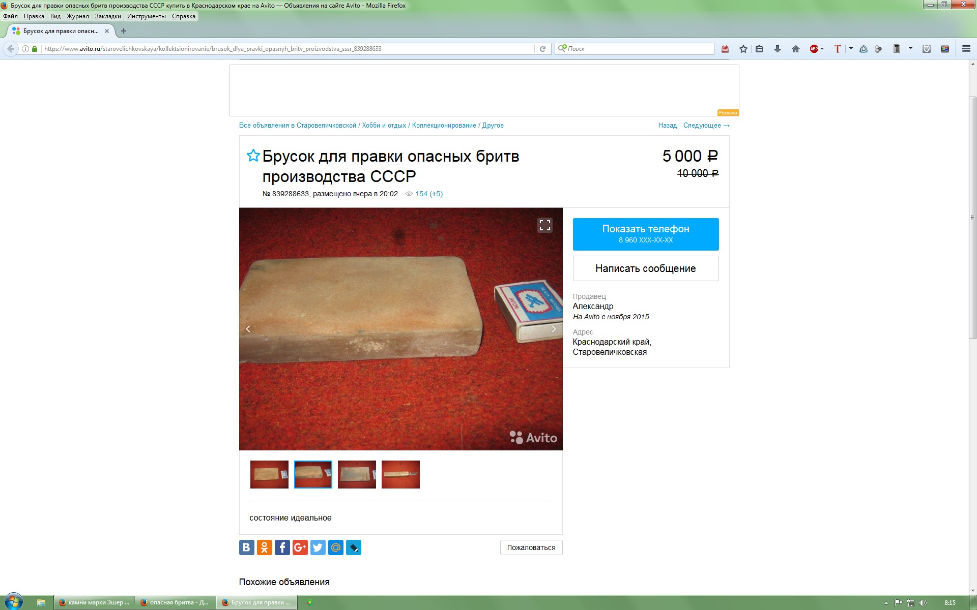 Re: Аукционы: плагиат, развод и "великолепные" описанияkuznec, посмотри внизу "Другие объявления автора Андрей". Я так понимаю, он профессионально или полупрофессионально бритвами занимается. Не удивлюсь, если тоже наш форумчанин