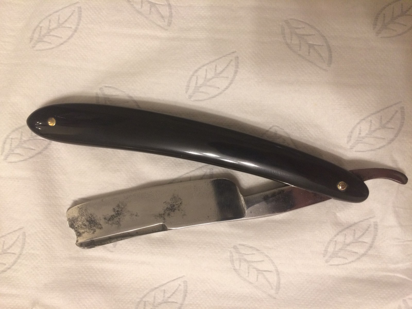 Француз бесхвостый DOMMANGET. По всей видимости 19-й век.Под осевым пином был ещё один штамп, но забыл сделать фото. Родная роговая оправа, в идеальном состоянии.. Родные стальные пины удалось сохранить и снова поставить. Только внутренние шайбы установил дополнительно. Очень приятная бритва и достаточно тяжёлая. Кромочка получилась очень ровная, на удивление. Патину в районе эрля не стал убирать, чтобы не стереть до конца штамп. Он и до реставрации плохо просматривался.. до Spoiler Show Spoiler Show Всё будет ХОРОШО...тел:+79065827134