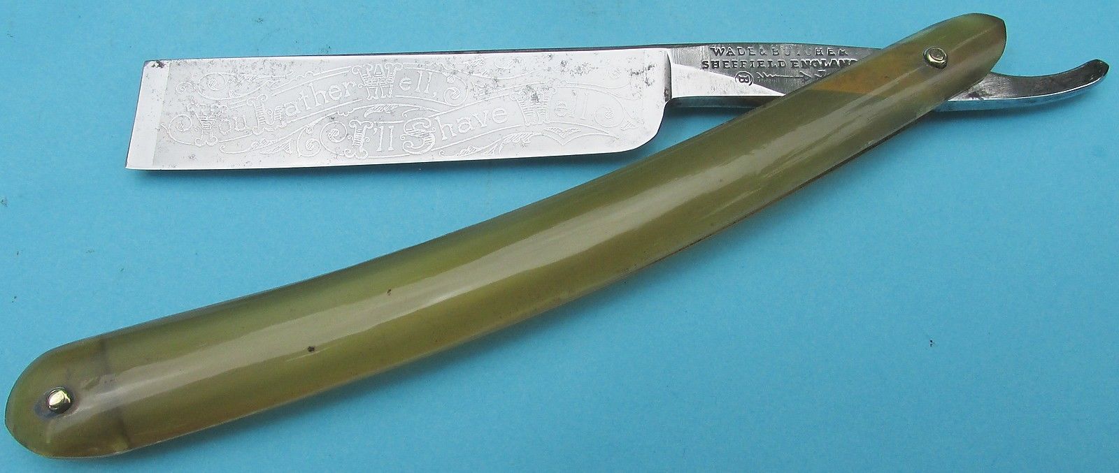 Первая симпатичная и, по многочисленным отзывам, популярная марка WADE & BUTCHER немного меньше 11/16" Мои мысли "за": это же Шеффилд! (Батчер), вроде бы сечение в форме клина обладает какими-то положительными свойствами.. Минусы: хохлома на клинке... Если его полировать, вероятно сточится...