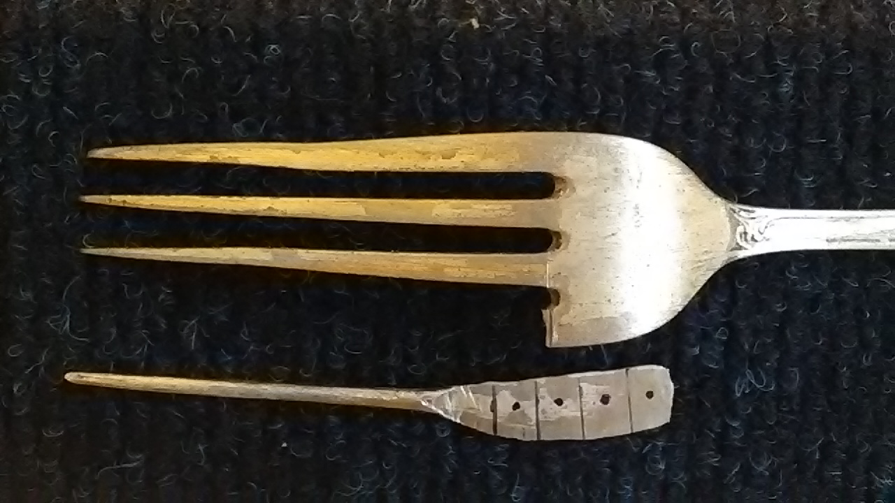 Для тех кому срочно потребовалось переклепать "немку", а нейзильберовых шайб и проволоки не оказалось, но при этом имеется старая вилка из мельхиора (МН), нейзильбера (МНЦ) или альпака (МНЦО). Откусываем штырь, на наковальне плющим толстый конец под шайбы(далее известным здесь способом, сверлим, разделяем и на "вертель"), а тонкий обстукиваем в пруток до необходимого диаметра.