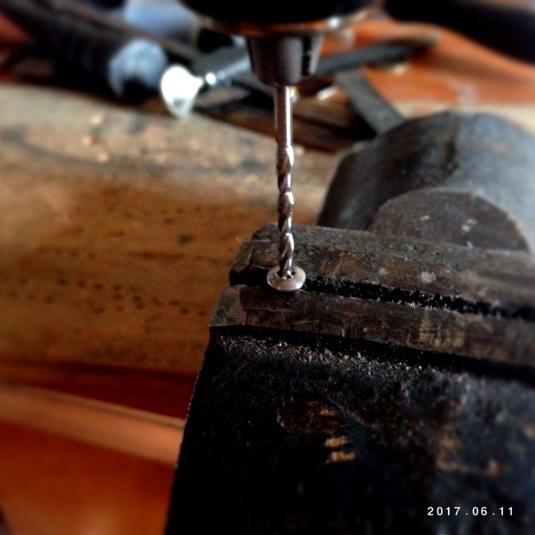 Декоративность таких шайб, конечно, под большим сомнением, т.к. вместе с латунной заклепкой зашлифовывается и полируется в монолитную полусферическую шляпку, будто и нет этой шайбы. Наверное, у кого есть опыт, могут так заклепать и без шайбы. Но функцию облегчения монтажа-демонтажа пинов и защиты ручки при таких манипуляциях шайбы выполняют не хуже заводских. Пока за неимением лучшего решил остановиться на этом варианте.