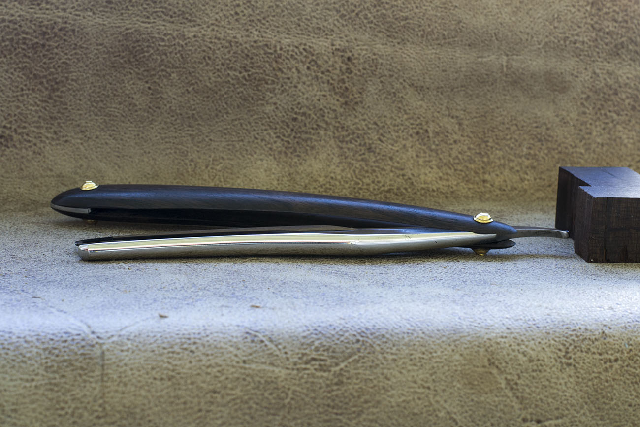 Современная опасная бритва от одного из немногих старых производителей бритв, продолжающих работать по сей день. На полотне выполнено воронение, ширина 5/8. Геометрия полотна в порядке, сталь произвела достаточно хорошее впечатление, думаю что бритва произведена до 2010 года, хорошее состояние. Бритва заточена без изоленты на обухе и готова к бритью. Рекомендую новичкам в качестве первой бритвы. Воронение является прекрасной защитой от коррозии. Продано DOVO Show