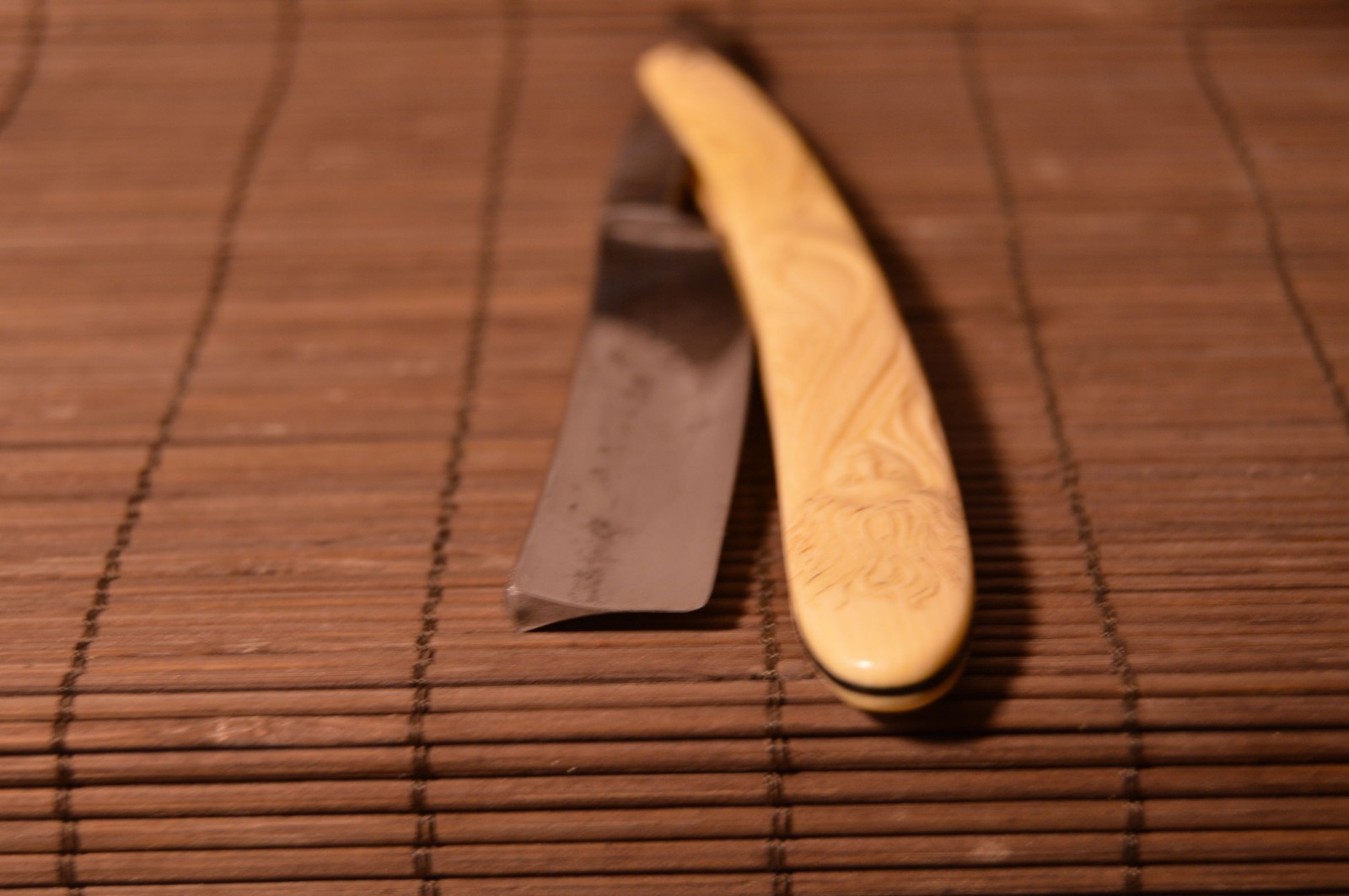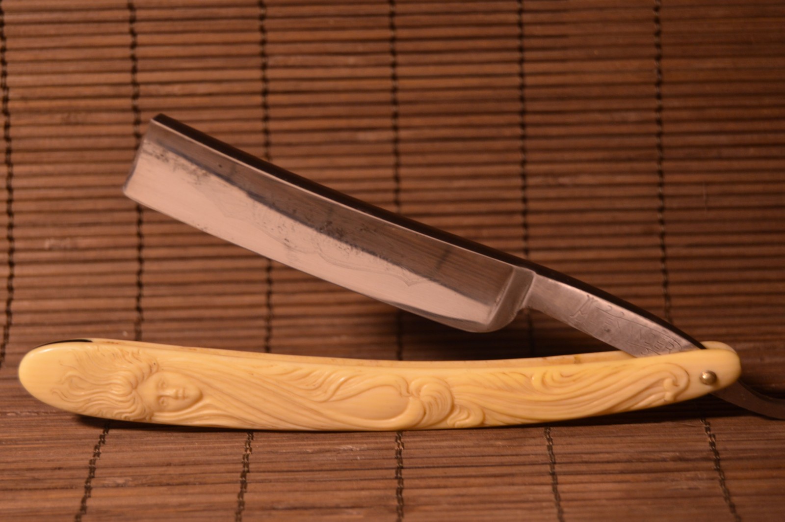 Заточен, есть следы времени не влияющие на бритье.