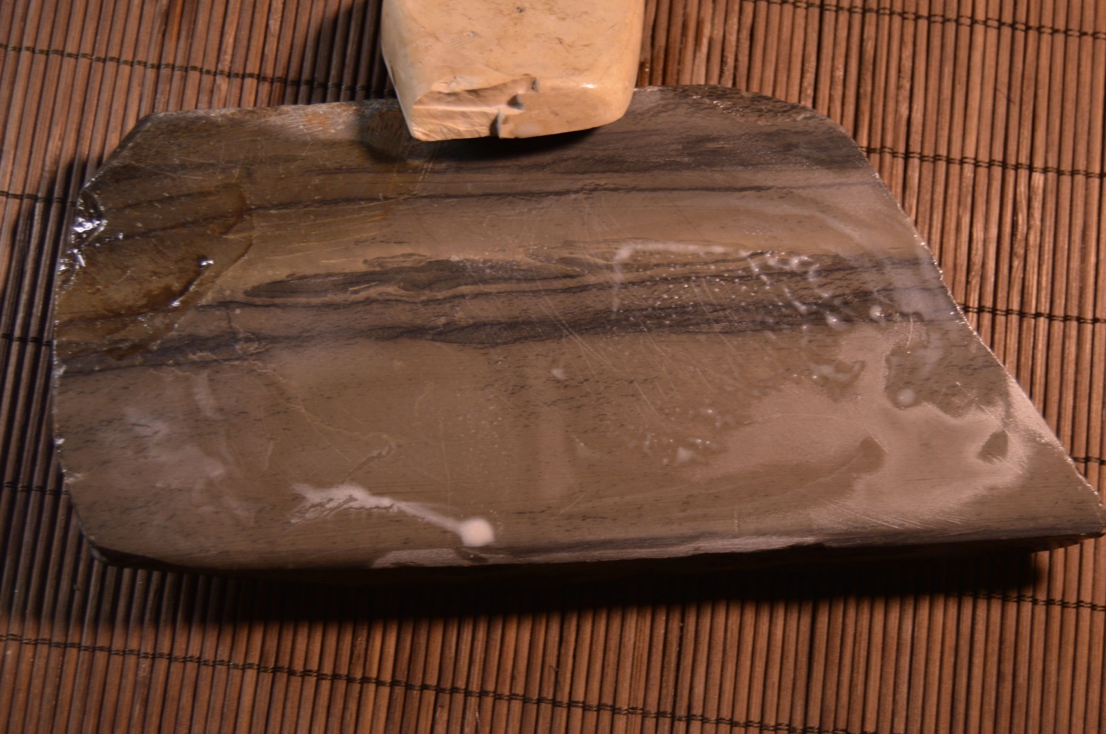 Re: Продаётся от artemarut1 Скидка 10% на все весь июль!!!Spoiler Show Японский бритвенный камень, нет каких либо линий или включений царапающих рк бритвы, на странице №5 есть камень с штампом, порода очень похожа, только у этого более богатая цветовая гамма, твердость 5-5+, размер 141/78/25мм. Цена Продан Spoiler Show Spoiler Show