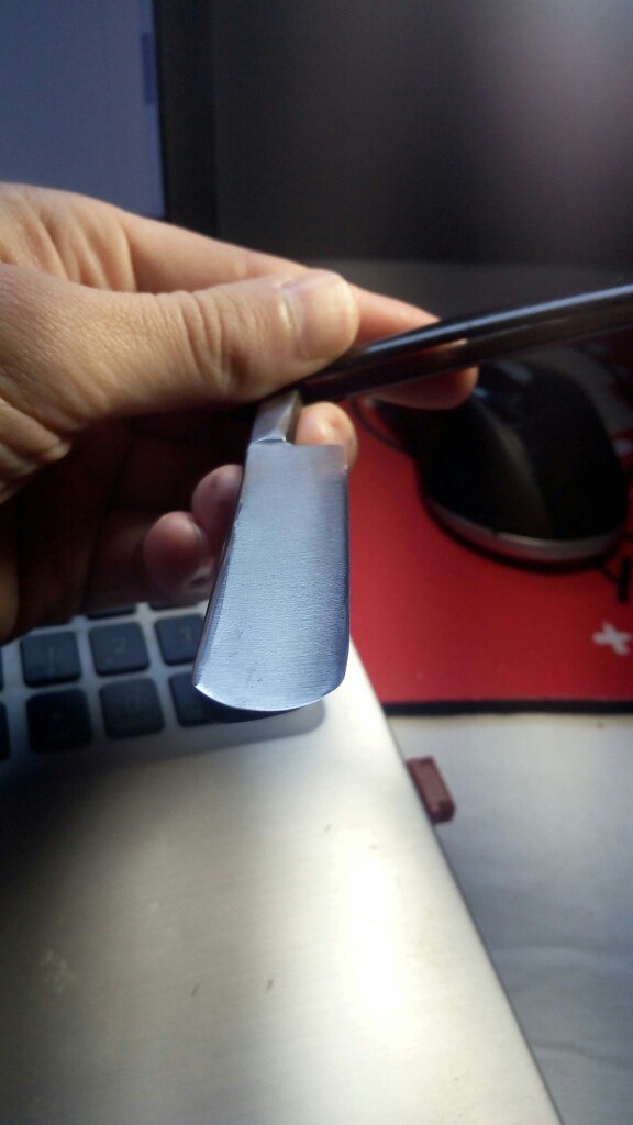 Кто-то хорошо поиздевался над этой бритвой. Сточен обух, сточена ступень. Зубья на нижнем эрле - мейд ин надфиль и слабоумие. Кастом типа.