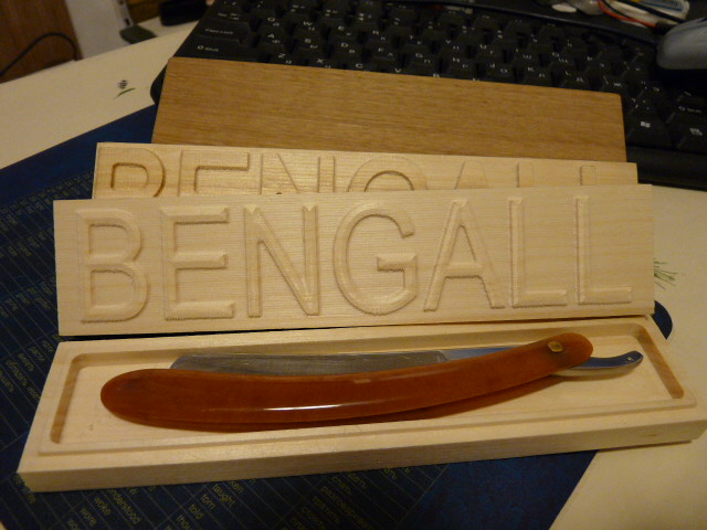 Re: Футляр для опасной бритвыНу вот по твоему предложению вырезал "BENGALL" на дне короба/пенала, фотки ниже.
