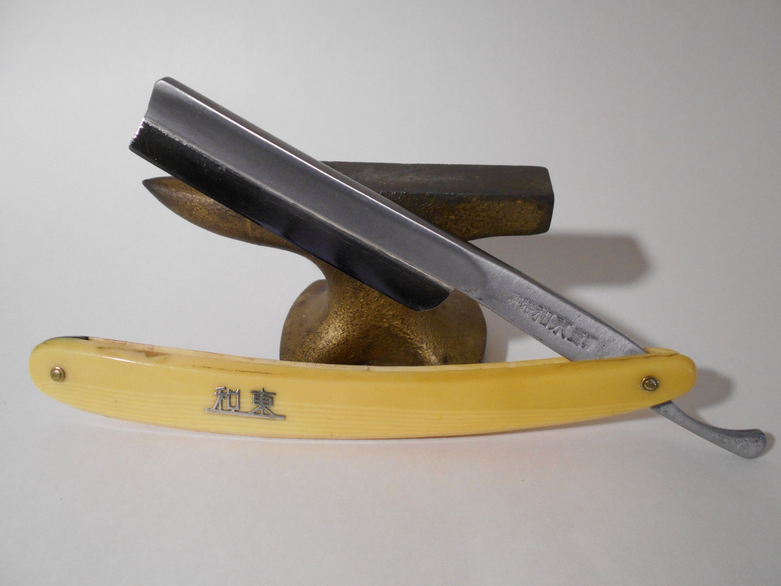 Все надписи на бритве читаются с права налево. Это может указывать на то, что бритва изготовлена до 1946г. В 46-м году в Японии случилась языковая реформа, и японцы стали писать подобно европейцам слева направо.