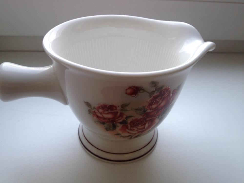 Вот тут такая ситуация получилась, что вы оба правы (3Район и Сепаратист). Данная чашка первоначально (и до сих пор, по моему) являлась аптекарской ступкой для приготовления различных снадобий-порошков. Но в то же время, уже давно применяется для взбивания пены и именно из-за удобной формы, наличия насечек-пупырышек-бугорков и правильного объема. Сам пользую подобную чашу корейского производства, которая продавалась в хозмаге именно как ступка и в комплекте шел еще и деревянный пестик. Еще скажу, что данная форма чаши для меня является самой удобной и вот уже четвертый год использую только ее, причем в наличии имеются и скаттлл и викторианская чаша и даже где-то кошачья мисочка валяется  . Вот моя: