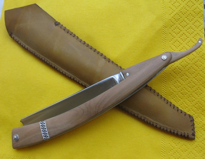 Re: Бритва до... и после...Сам говорил, что лучшее - враг хорошего, но не удержался. Вот загнал бритву в серебро и можжевельник. Ингридиенты: серебряное кольцо и пара сережек, лопаточка для сковородки из можжевельника. Чехол тоже самопал.
