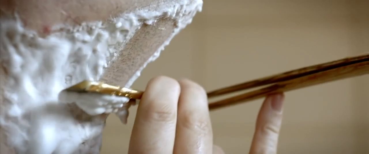 Re: Фильмы с участием опасной бритвыГлянь на угол наклона клинка к коже. Что можно брить под таким углом?