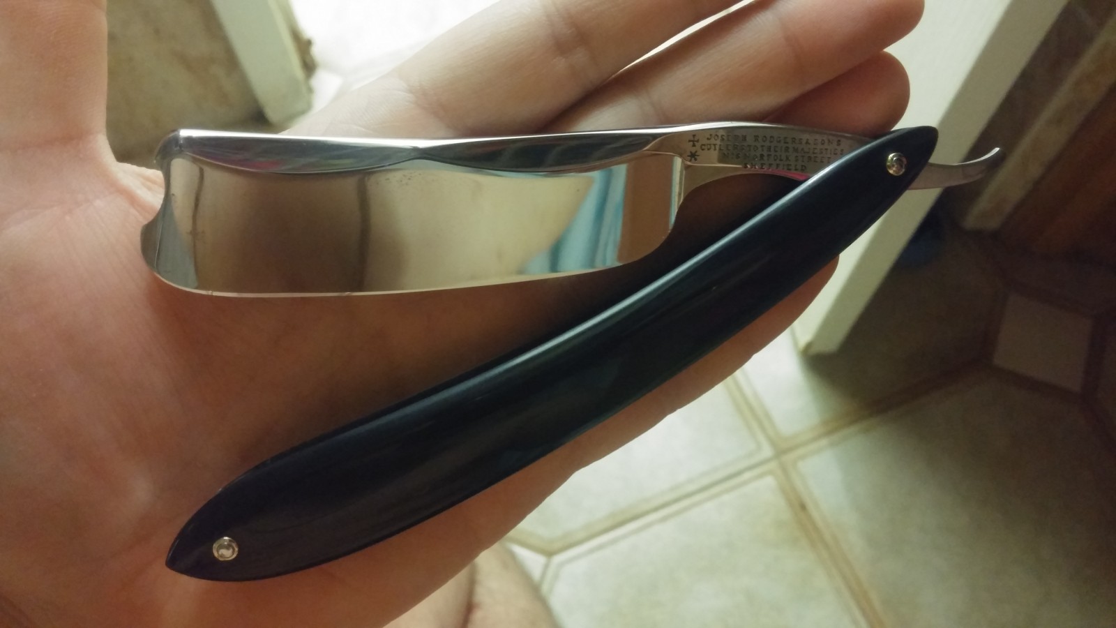 По технике - это такая же или даже более важная составляющая комфортного и чистого бритья. Тут только набивать руку нужно, со временем через несколько месяцев Вы выработаете свою технику, которая обеспечит отсутствие порезов, чистое бритье, получение удовольствия от процесса. Те сложные участки, которые сейчас не поддаются - будете легко спокойно пробривать. Я уже писал в теме для новичков, но снова повторю те пункты, изменяя которые я смог получить максимально хороший результат: 1. сама бритва 2. угол наклона бритвы при первом и втором проходе (первый - угол больше, второй - меньше) 3. сила нажатия на бритву (в моем случае очень важный момент) 4. направление (для чистого бритья второй проход почти на всех участках делаю строго против роста щетины, причем он может быть каким угодно и снизу вверх, и вбок и т.д.) 5. распаривание или не распаривание щетины перед бритьем (не делаю этого т.к. кожа становится очень мягкой и легче получить порез) 6. количество проходов (1-4, причем на некоторых участках может быть достаточно и 1, а на других - нет) 7. использование или не использование средств до или после бритья 8. само средство для бритья (мыло, крем, пена, гель) и способ его приготовления 9. подготовка бритвы к использованию т.е. правка (у меня была с этим проблема и выяснил со временем, что бритву не правил, недостаточное давление оказывал на кромку при правке - со временем острота и качество бритья сильно падали) 10. и другие моменты Итог - подбирайте бритву, которая понравится больше всего и даст при этом самое комфортное бритье; вырабатывайте и совершенствуйте технику и все получится! Joseph Rodgers & Sons 8/8 Barber's Notch, Sheffield