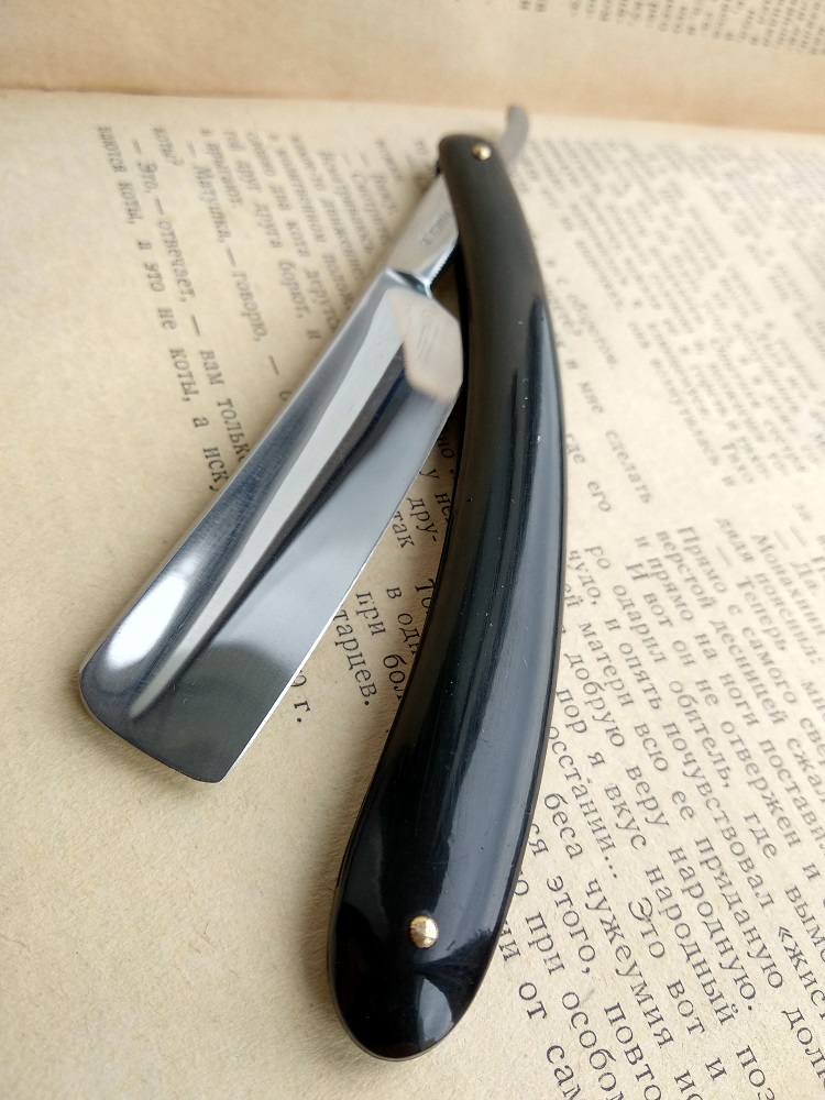 Бритва для Старичка., тот, который давно отбросил стереотипы по поводу ТМ, производителя и т.д. В использовании не была. Была проведена легкая профилактика полотна. Есть мелкие грешки, но они поверхностные.Ручка - целлулоид. Пины родные. 55$. Почта входит в скромную стоимость. Spoiler Show Re: Продаётся от KarangiПривет. Мост 55г с предыдущей странички продан не? Если нет, какая цена?