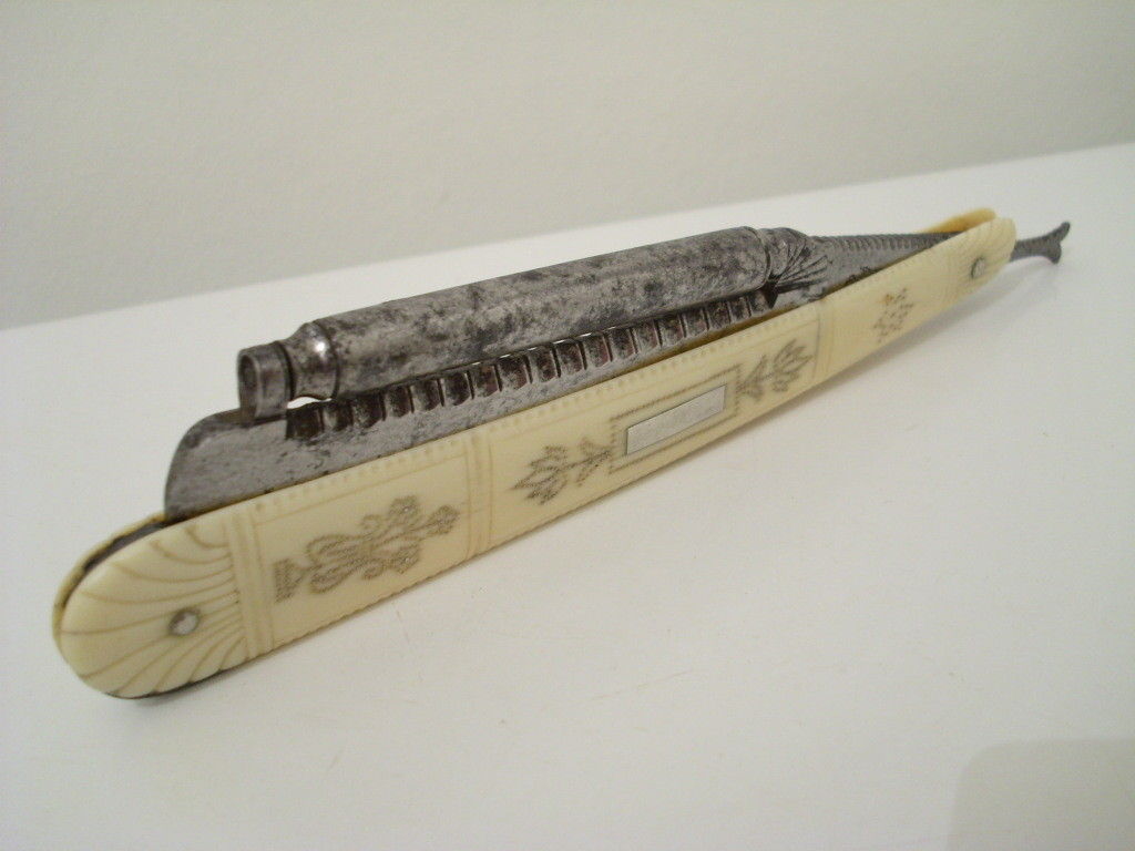 Добавлено спустя 1 минуту 54 секунды: Раньше не встречал такую конструкцию. Нашёл только лишь такую информацию о производителе - "Мастер из Парижа во Франции Pierre Vallon, который выиграл пару почетных наград и бронзовую медаль в 1827 году. Его медаль была за хорошо выполненные столовые приборы и особенно за бритву со сменным лезвием." ...не могу я не куя))