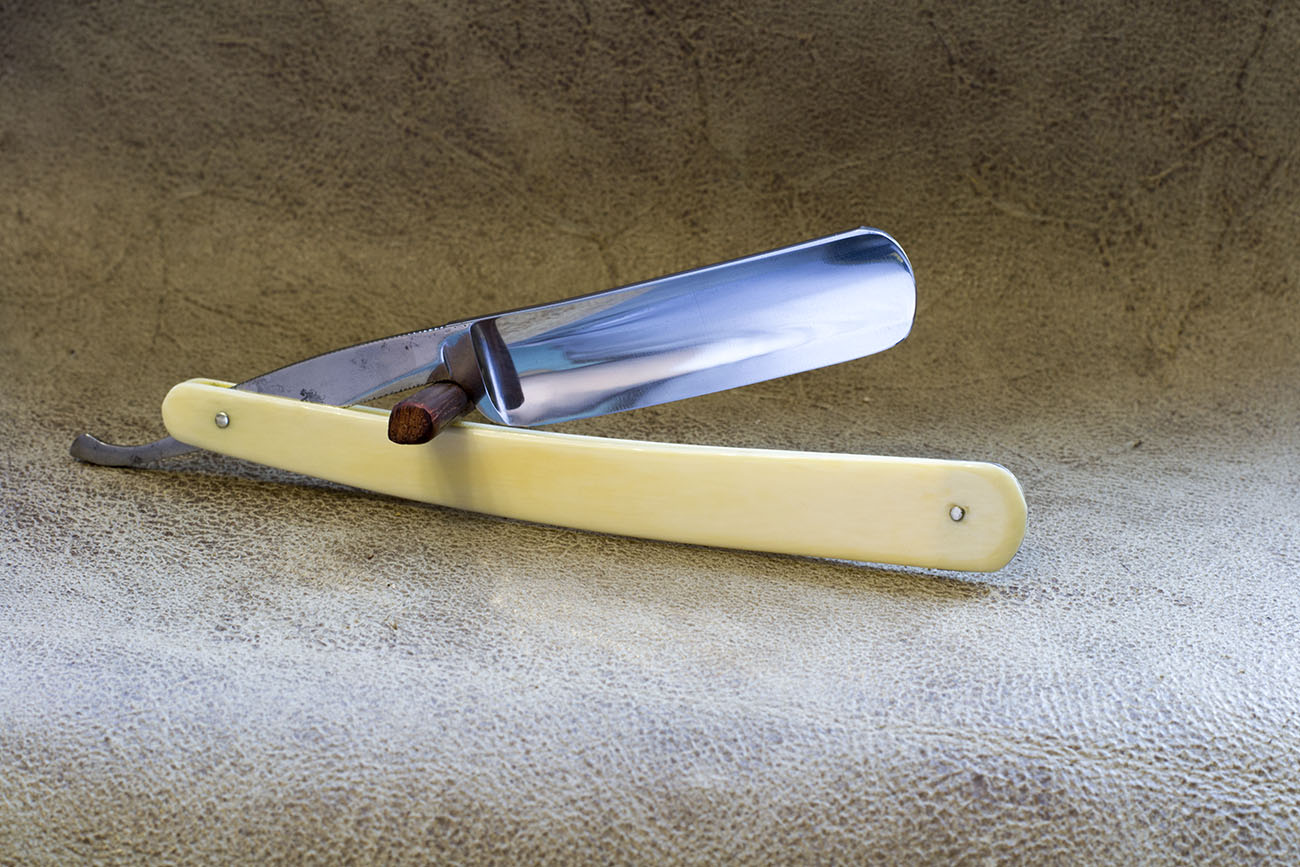 Английская бритва от известного производителя, только известен он не по опасным бритвам а по другим изделиям стальной промышленности, таким как безопасные бритвы, ножи, карманные ножи и прочая полезная в хозяйстве стальная мелочь. Бритвы весьма удачны в плане геометрии и стали – хорошо точатся, имеют довольно узкую и ровную кромку, данный экземпляр так же снабжен рукоятью из слоновой кости, ширина полотна 20 мм, бритва имеет отчетливо видную вогнутость со ступенькой, так называемый bellied ground но по сути бритва почти не отличима от таких же экземпляров с простой полной вогнутостью. Бритва была заточена мной впервые и никогда не была в использовании. Продано Lockwood Show